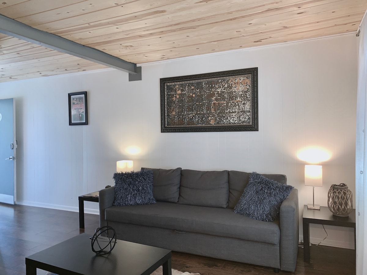 Stiúideo nua - athchóirithe! Bhíodh ár 'bnb' ina móstán 50 a tiontaíodh go hárasáin. Giota beag de nostalgia, ach 2.5 míle go Broadway agus 15 nóiméad ón aerfort. Tá vibe retro 50 cromáin ann, ar féidir siúl chuig Sicín Te Hattie B agus cuid de na bialanna agus na beáir is fearr in Nashville. Tá cloigeann cithfholcadáin báistí, urláir adhmaid, feistis chomhaimseartha, saothar ealaíne bunaidh ón ealaíontóir áitiúil sa stiúideo uasscála seo, Teilifís scáileán cothrom 60", éadaí leapa compordacha, cuilteog síos agus saoráidí tuisceanacha eile.
