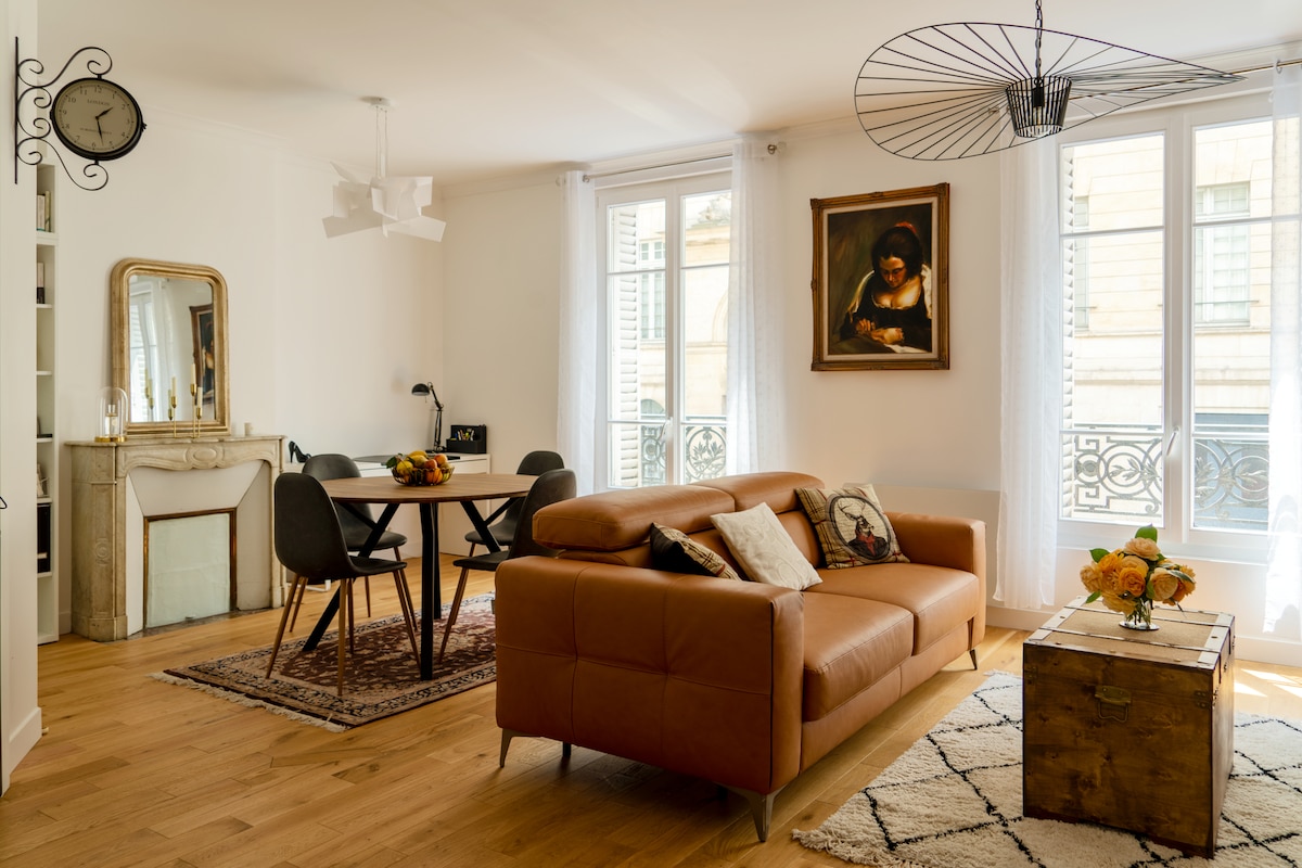 Appartement climatisée de 60 m2 à l’agencement haut de gamme dans l’hyper centre de Paris quartier historique de Montorgueil, célèbre pour ses commerces de bouches, ses petits bistrots et restos. L’appartement se situe au 1 er étage d’un immeuble dans une rue très calme. Il a été refait à neuf en 2023 par une célèbre architecte et donc très bien agencé avec des équipements de très haut standing. Vous y serez comme dans une suite d’hôtel avec le charme en plus, d’un vrai logement parisien.