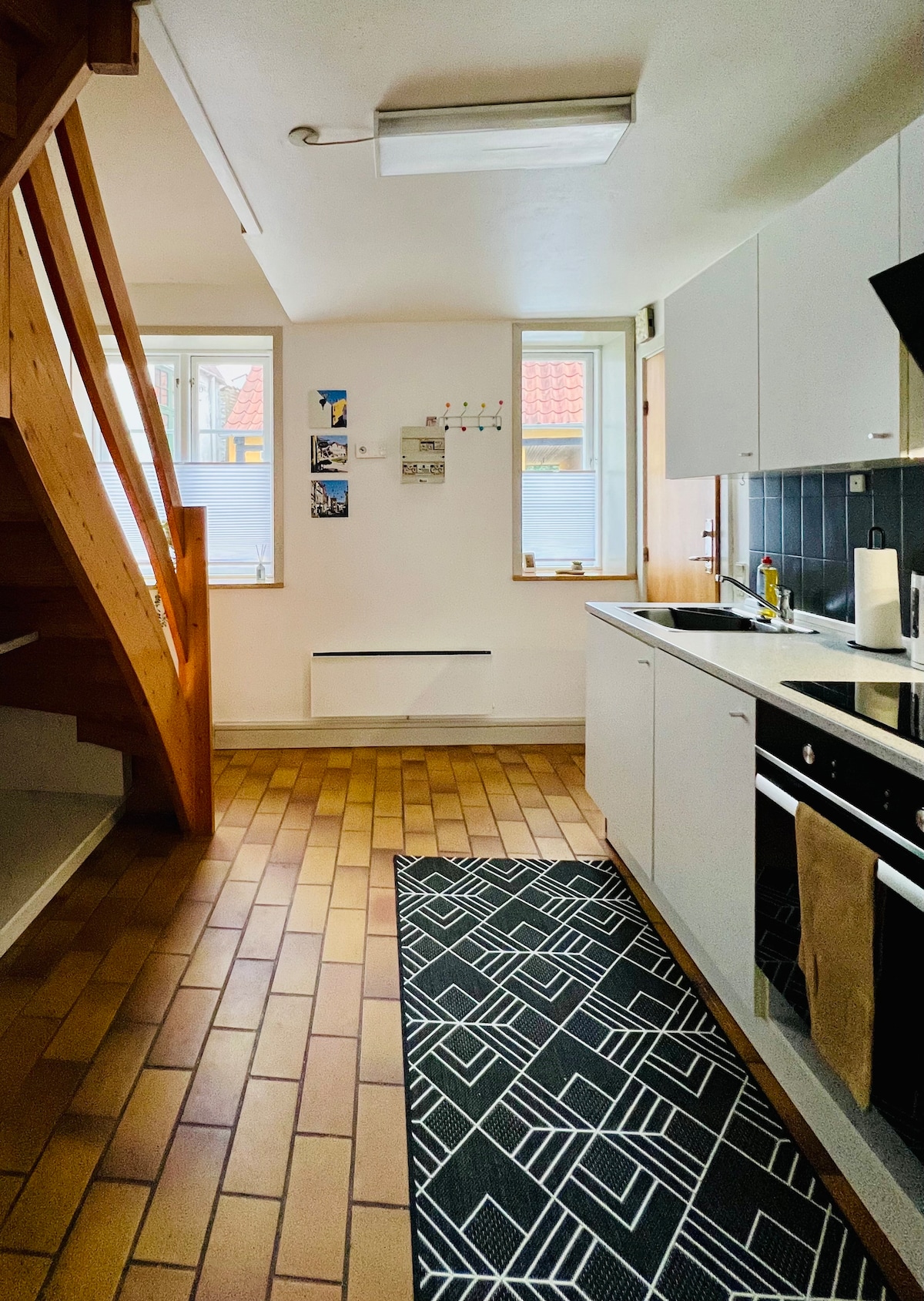 Teach baile mór beag le bealach isteach príobháideach agus ardán , atá suite ar an tsráid is sine in Aabenraa Slotsgade. Tá an teach athchóirithe le fuinneoga slatted agus tá cuid den sean - adhmad caomhnaithe agus tá sé le feiceáil. Ar an mbunurlár tá cithfholcadán agus leithreas agus ar 1. Tá cistin agus seomra suí ag Sal. Tá tolg codlata sármhaith ann ina bhfuil tochtanna sómasacha agus tá cistin lánfheistithe ann ina bhfuil soithí, cuisneoir agus reoiteoir, micreathonnán, oigheann agus hob ceirmeach. Ina theannta sin, is alcove é le tocht maith