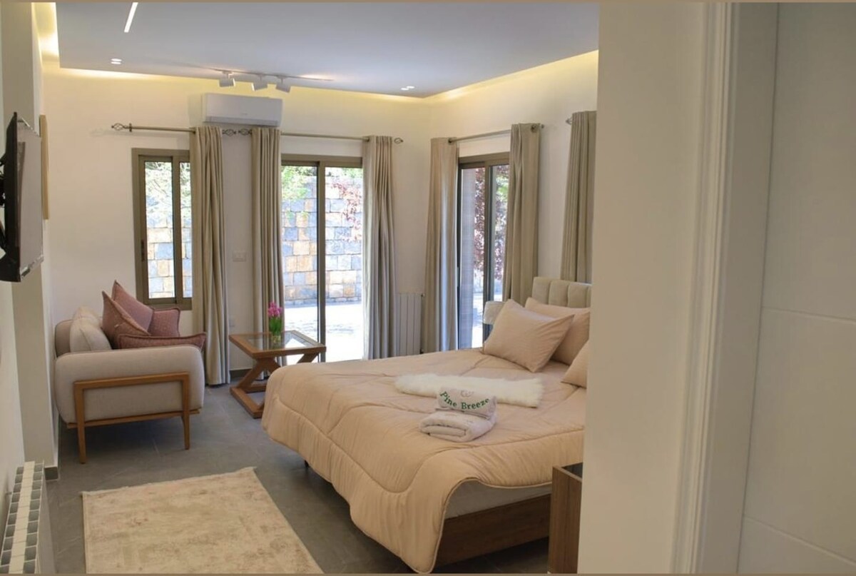 This special house has always been my dad's dream; a place where memories are made. Surrounded by nature, it is the perfect spot to relax and unwind. Whether you are planning a morning event or seeking a peaceful getaway, our spacious property can comfortably host up to 100 guests. Located just 45 minutes away from Beirut, you can enjoy the fresh air, lush greenery, and the soothing sounds of nature.