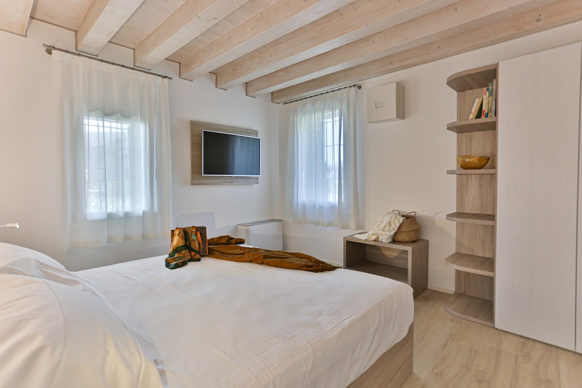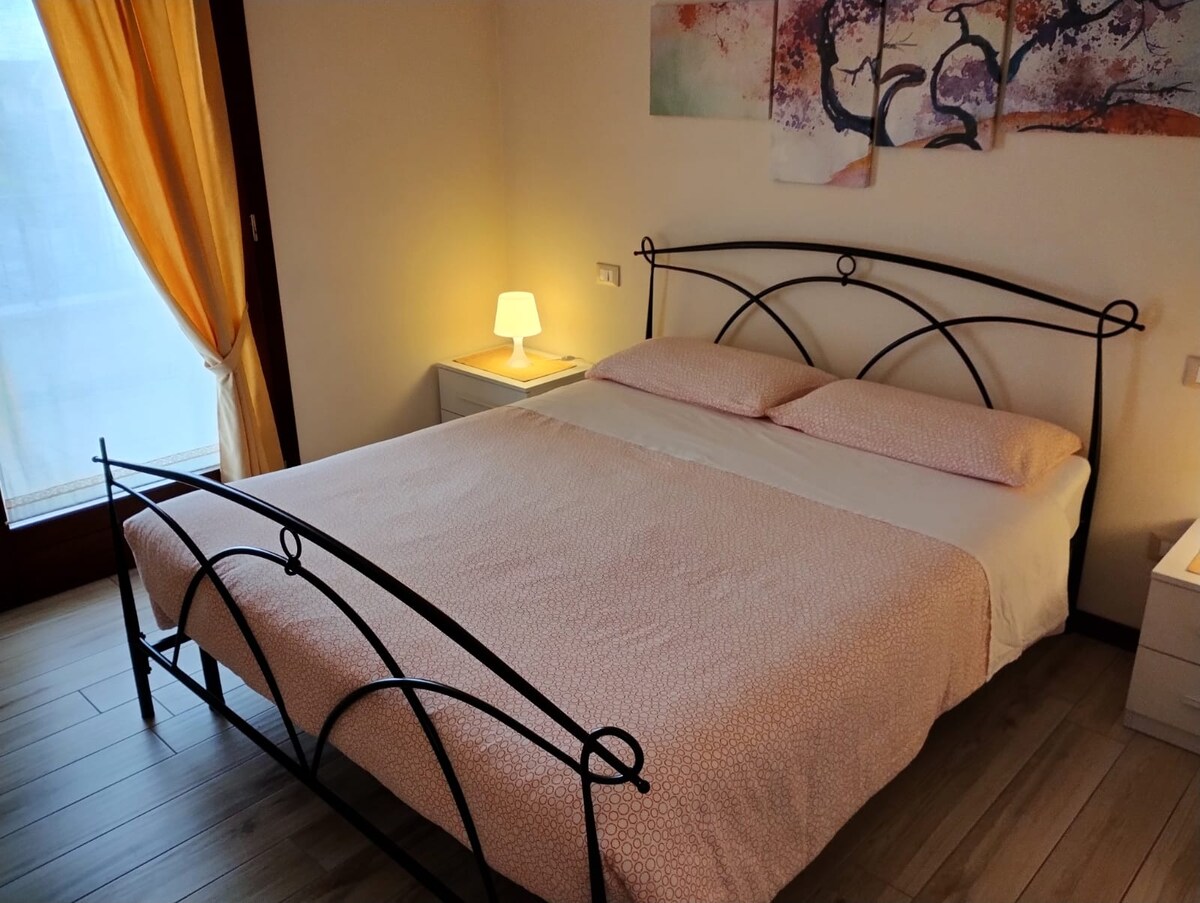 Árasán teolaí in Abano Terme atá oiriúnach do 2 -4 dhuine le seomra leapa dúbailte agus leaba thoilg. Tá cistin feistithe, aerchóiriú, Wi-Fi, teilifís le Netflix agus earraí níocháin ann. Tá gairdín príobháideach ann le bord agus cathaoireacha. Suite i gceantar ciúin ach dea-nasctha, gar d'ollmhargadh, d'ionad siopadóireachta agus do stadanna bus. Páirceáil lasmuigh saor in aisce. Suíomh iontach chun teacht ar: lár na cathrach, spánna agus príomhchathracha turasóireachta Veneto go léir.