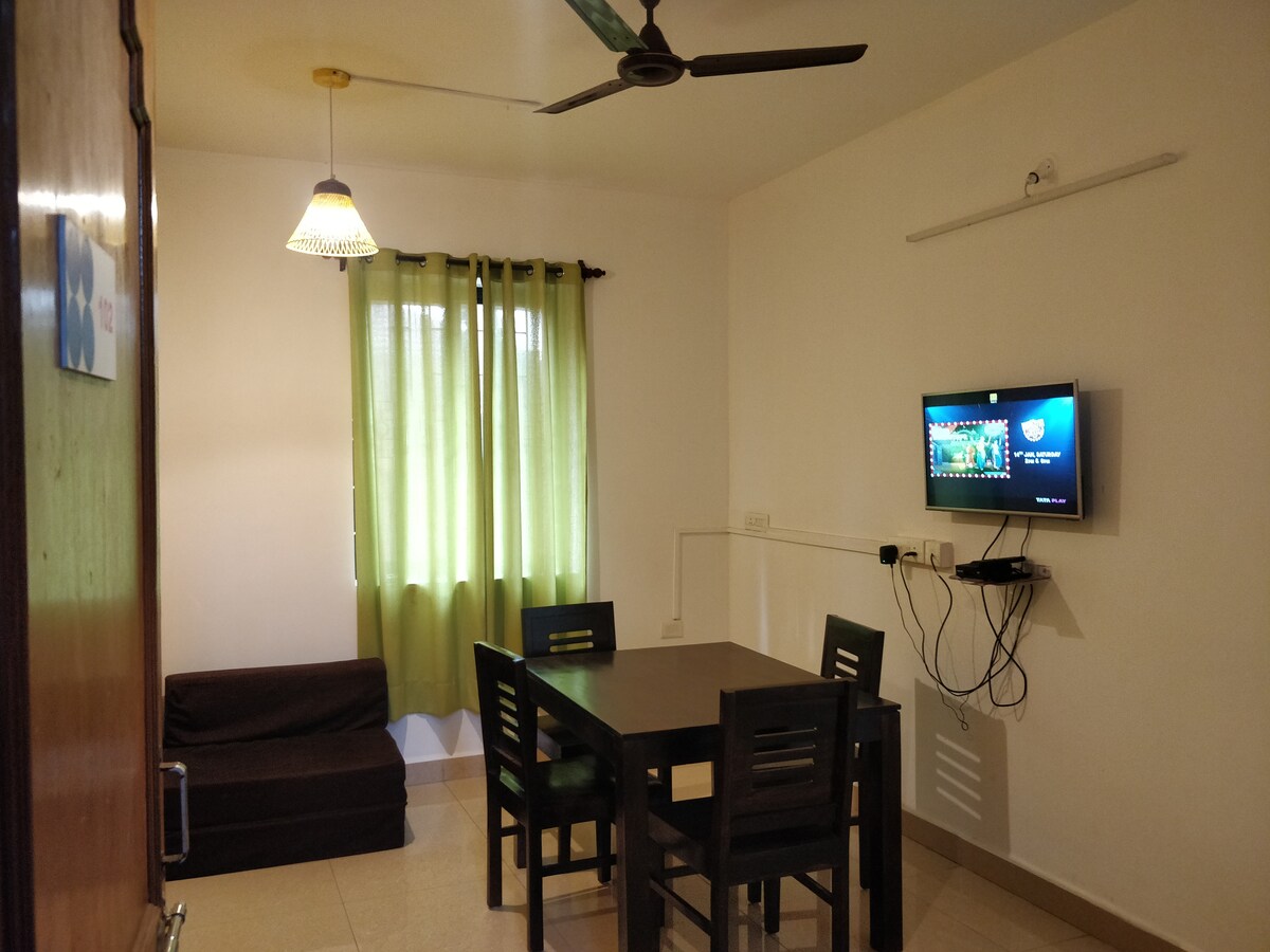 Is árasán stiúideo atá feistithe go maith do lánúineacha é an teach seo as baile. Tá an áit foirfe do thurasóirí atá ag lorg tréimhsí fanachta gairide chomh maith le daoine atá ag iarraidh a bheith ag Obair Ón mBaile. Tá cúltaca cumhachta gineadóir 24X7 agus luas ard 100 MBPS wifi san árasán. Tá an suíomh lárnach do chósta turasóireachta North Goa agus tá rochtain éasca ar gach trá laistigh de 10 -20 nóiméad den turas. Bain sult as eispéireas galánta ag an áit seo atá suite go lárnach.
