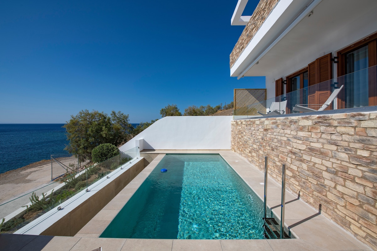 Villa Marelia is a waterfront villa with private infinity pool right on the sandy beach of Megas Gialos in Syros. It is equipped with high speed Wi-Fi, all modern amenities and comforts to make your stay unforgettable. It is located just 10 mins from the main town of Ermoupoli offering a pristine and peaceful environment with unobstructed views of the Aegean Sea from every part of the villa. The beach of Megas Gialos is only 20 meters away. Restaurants and amenities are nearby.