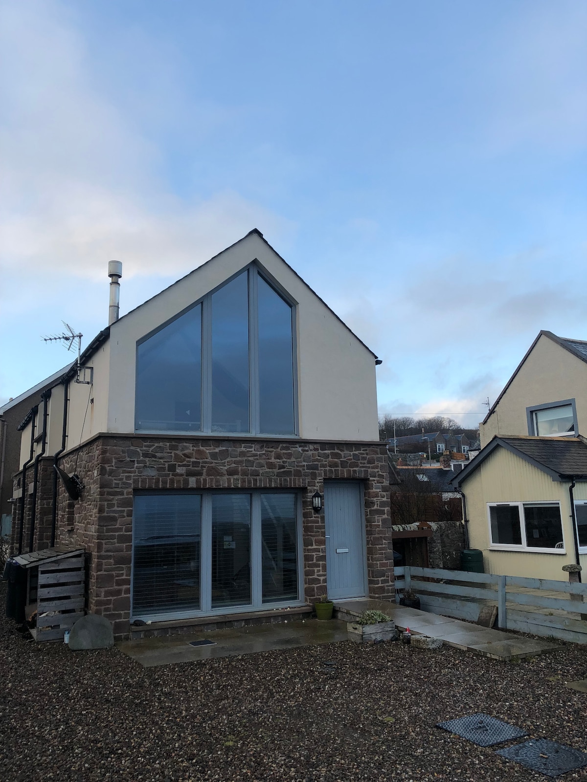 Teach uathúil nua - aimseartha le radhairc iomlána ar an bhfarraige. Réadmhaoin mhór ach chosúil le seomra leapa ar leibhéal mezzanine & en - suite leis na radhairc farraige is fearr chun dúiseacht!! Is seomra suí/ cistin agus áit itheacháin plean oscailte é an bunurlár ina bhfuil téamh faoi urlár agus sorn dóite adhmaid. Tá seomra fóntais ag an réadmhaoin freisin le meaisín níocháin & ulóg agus leithreas/seomra cithfholctha thíos staighre. 1 Spás páirceála príobháideach ar fáil ar an láthair