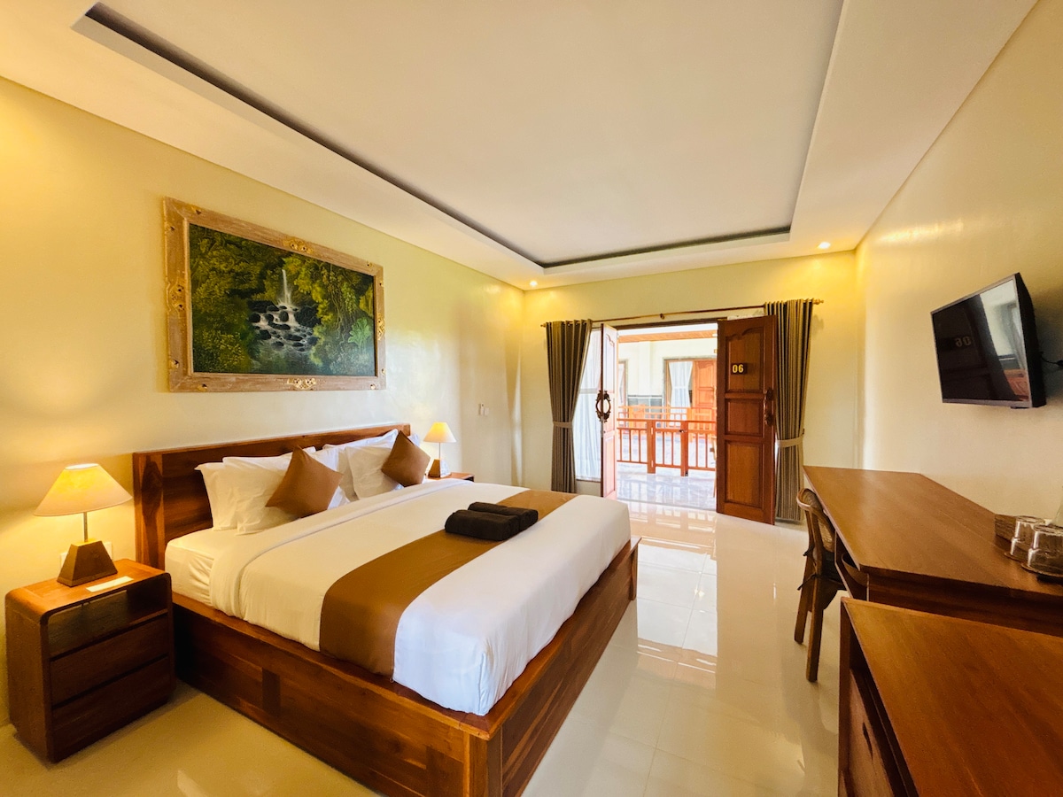 Soláthraíonn sé timpeallacht shuaimhneach chun scíth a ligean tar éis lá gnóthach a chaitheamh ag iniúchadh radharcanna Ubud. Is bonn cluthar é ina bhfuil feistis glan - líne, seomra folctha cliste en - suite agus balla maisiúil a chuireann oidhreacht chruthaitheach Bali ar taispeáint. Meascann lochtán príobháideach nó balcóin gan stró ar an taobh amuigh ag soláthar spás breise chun suí agus do scíth a ligean.