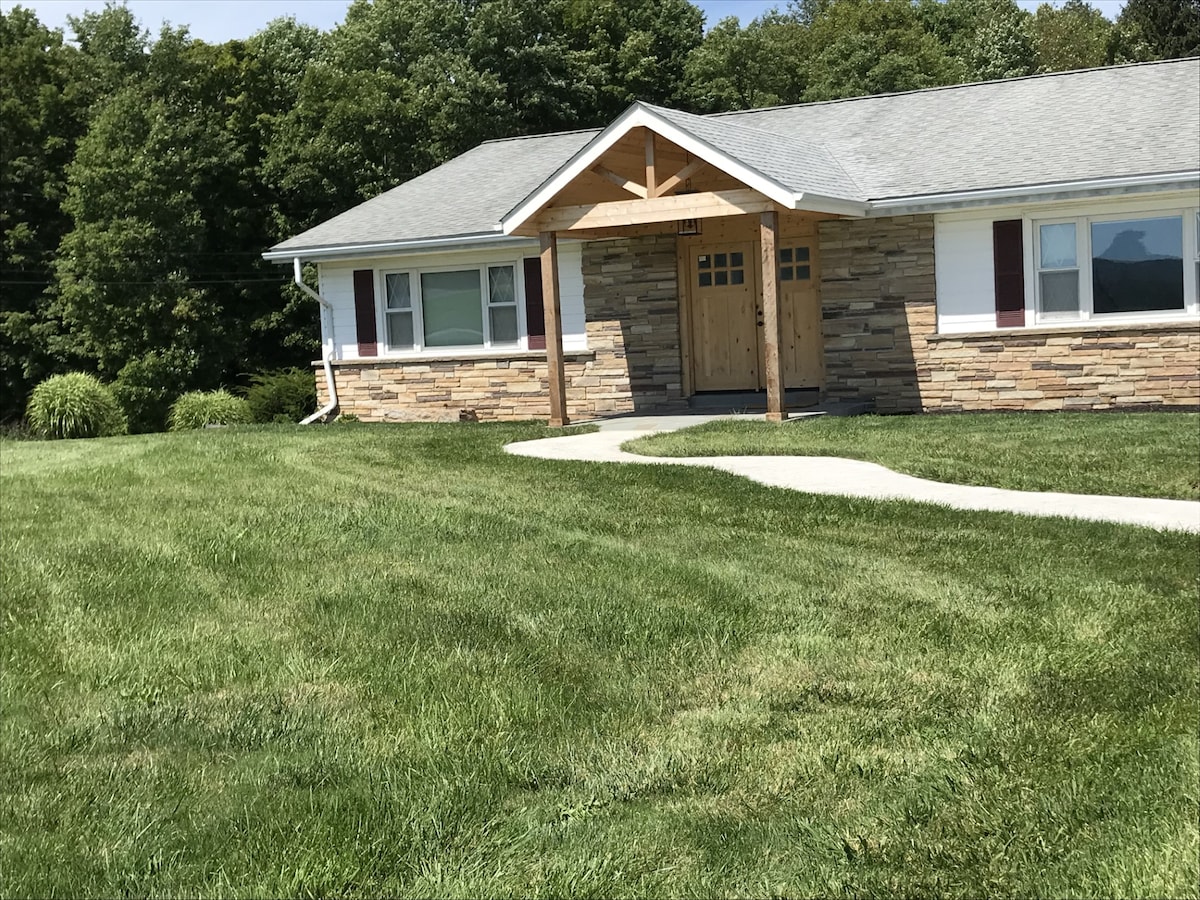 Téigh siar agus lig do scíth sa spás socair galánta seo. Árasán úrnua álainn aon seomra leapa os cionn garáiste scoite díreach 5 mhíle ó Deep Creek Lake. Spás atá deartha go hálainn le cistin mhór d'ardchaighdeán an cheardaí, leaba gallchnó nua - thionsclaíoch ar mhéid rí, vanity beo agus caipín balla, lampa in iúl, agus iad ar fad déanta ag ceardaí áitiúil. Leathar a tharraingt amach tolg le leaba na banríona ina chodladh beirt aíonna breise. Lig do scíth cois an phoill dóiteáin agus éist leis na héin sa choill.