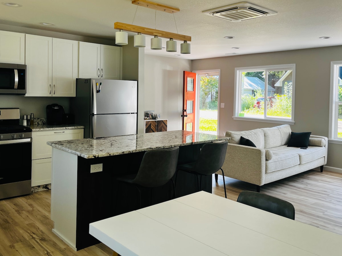 Tar ar do shuaimhneas ag an teachín fairsing athchóirithe. Beidh do theaghlach gar do gach rud nuair a fhanfaidh tú ag an teachín seo atá suite go lárnach i Sráidbhaile Manitou Beach. Bain sult as an saol amuigh faoin aer agus bain leas as an gclós fairsing, an poll dóiteáin, an gríoscán, an paitió, na póirsí faoi iamh go hiomlán, agus an plean urláir oscailte. Níl sa teachín ach siúlóid dhá nóiméad chuig bia, teach tábhairne, siopadóireacht, caife, agus an áit snámha phoiblí. Tabhair leat do bhád. Níl an seoladh poiblí ach leathmhíle síos an bóthar.