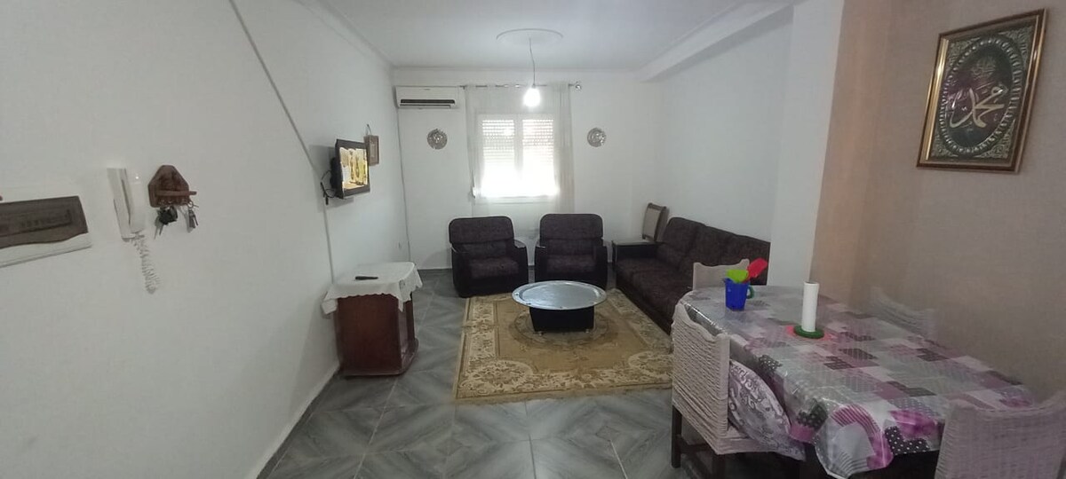 Lóistín suaimhneach a thairgeann fanacht suaimhneach don teaghlach ar fad Árasán F3 An - ghlan le gach saoráid Aerchóiritheoir, meaisín níocháin, teilifíseán ceangailte, Uirlisí cócaireachta, meaisín caife, micreathonnán 2 linn snámha bhreise ar an díon 5 nóiméad ón trá Radharc álainn ar an bhfarraige Áit an - chiúin agus oiriúnach do theaghlaigh. Tá 2 sheomra leapa san árasán seo ina bhfuil leaba dhúbailte, 2 leaba shingil chomh maith le 2 thocht, is féidir suas le 7 nduine a bheith ann, áit chónaithe fhálaithe agus áit chónaithe dhaingnithe