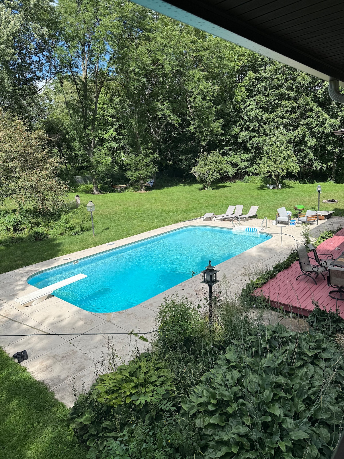 Nead an Iolair: Éalú Teolaí Teaghlaigh! Díphlugáil agus lig do scíth ag The Eagle's Nest, cábán athchóirithe ar stilts atá neadaithe ar 5 acra choillteach phríobháideacha le radhairc iontacha ar Abhainn na Carraige agus Kyte Creek - díreach 5 nóiméad ó Oregon, IL! Téigh ag fánaíocht, ag iasc, ag cadhcáil, nó lig do scíth cois tine faoi na réaltaí. Foirfe do theaghlaigh agus do dhaoine a bhfuil dúil acu sa saol lasmuigh, cuireann an tearmann síochánta seo eachtraíocht agus suaimhneas ar fáil. Cuir in áirithe anois é agus éalaigh ó cheo na cathrach!