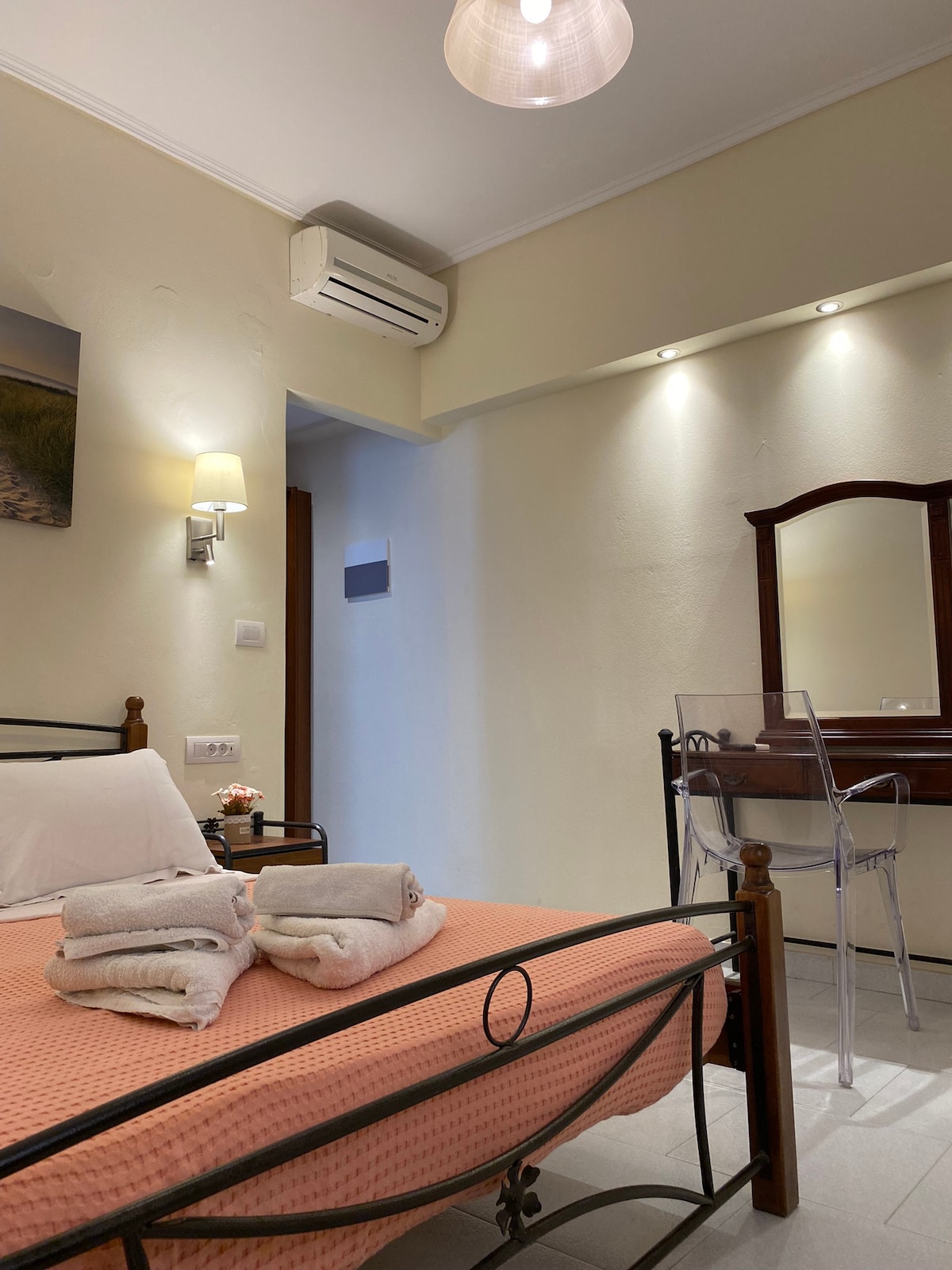 Is tearmann glan 85m² é Lina & Babis 'Home, ina bhfuil seomra suí chic agus cúinne cócaireachta teolaí, lán - eqquiped. Cuireann sé dhá sheomra leapa en suite ar fáil le leapacha dúbailte, atá oiriúnach do chompord agus do phríobháideacht. Lasmuigh, is féidir leat do scíth a ligean ar an veranda fairsing timpeallaithe ag gairdín síochánta. Bain sult as áisiúlacht páirceála saor in aisce díreach ar leac an dorais. Díreach béal dorais tá Little Lovers ’Nest, teach gleoite a óstálann beirt aíonna, atá foirfe do chairde nó do mhuintir atá ag taisteal le chéile. Seiceáil le haghaidh infhaighteacht!
