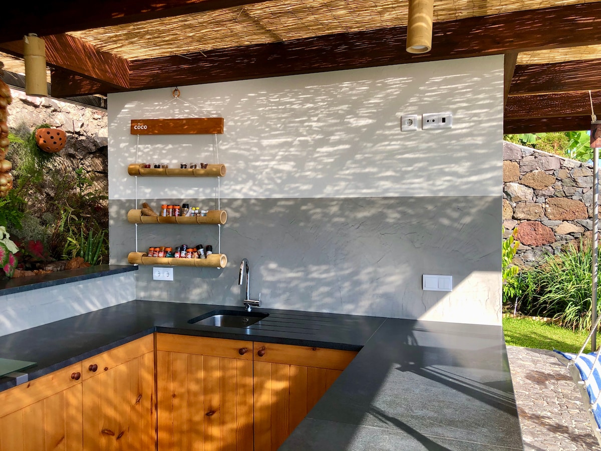Is gairdín torthaí trópaiceach é Meu Pé de Cacau agus tearmann oileáin timpeallaithe ag aillte drámatúla soir ó thuaidh agus an tAigéan Atlantach ollmhór siar ó dheas. Roinneann ceithre stiúideo atá deartha go hálainn agus atá tógtha go hinbhuanaithe an réadmhaoin le linn snámha éigríche, áiteanna sóisialta agus plandálacha sómasacha ag óstáil na céadta torthaí trópaiceacha éagsúla, curtha ar ardáin talmhaíochta traidisiúnta a cruthaíodh i gcloch basalt.