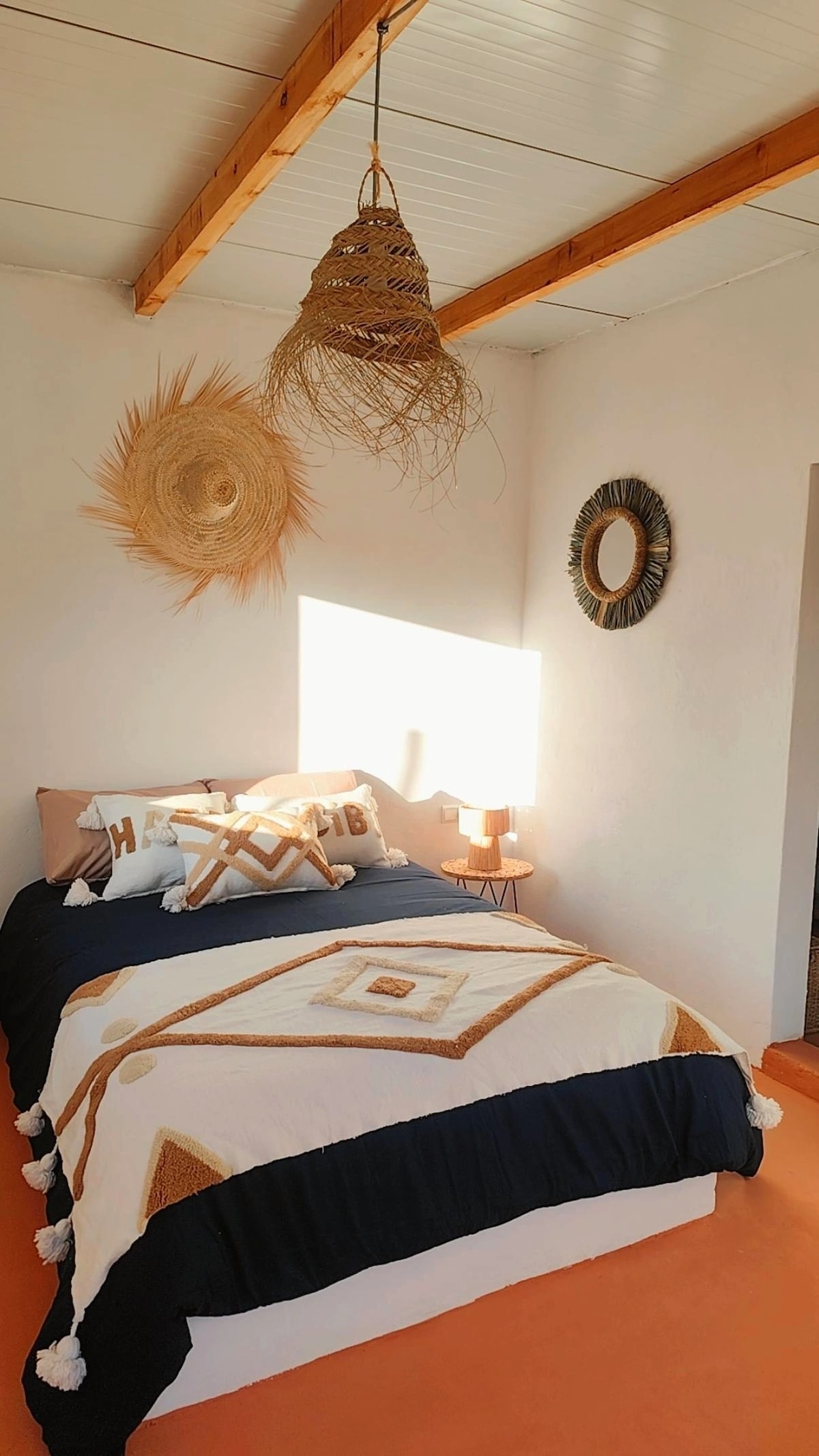 Fáilte go dtí ár stiúideo adhmaid traidisiúnta teolaí, díreach nóiméad ó thránna áille Tamraght agus Taghazout. Foirfe do bheirt, cuireann sé dhá leaba shingil agus maisiúchán te, barántúil ar fáil atá spreagtha ag deisceart Mharacó. Fan linn i dteach aíochta cairdiúil, lig do scíth ar an ardán, agus glac páirt i gceachtanna surfála laethúla in aice láimhe. Déan iniúchadh ar sheoda áitiúla amhail dumhcha Timlalin, margadh Souk El Had, agus Paradise Valley. Bíodh suaimhneas, cultúr agus surfáil agat in aon áit amháin.