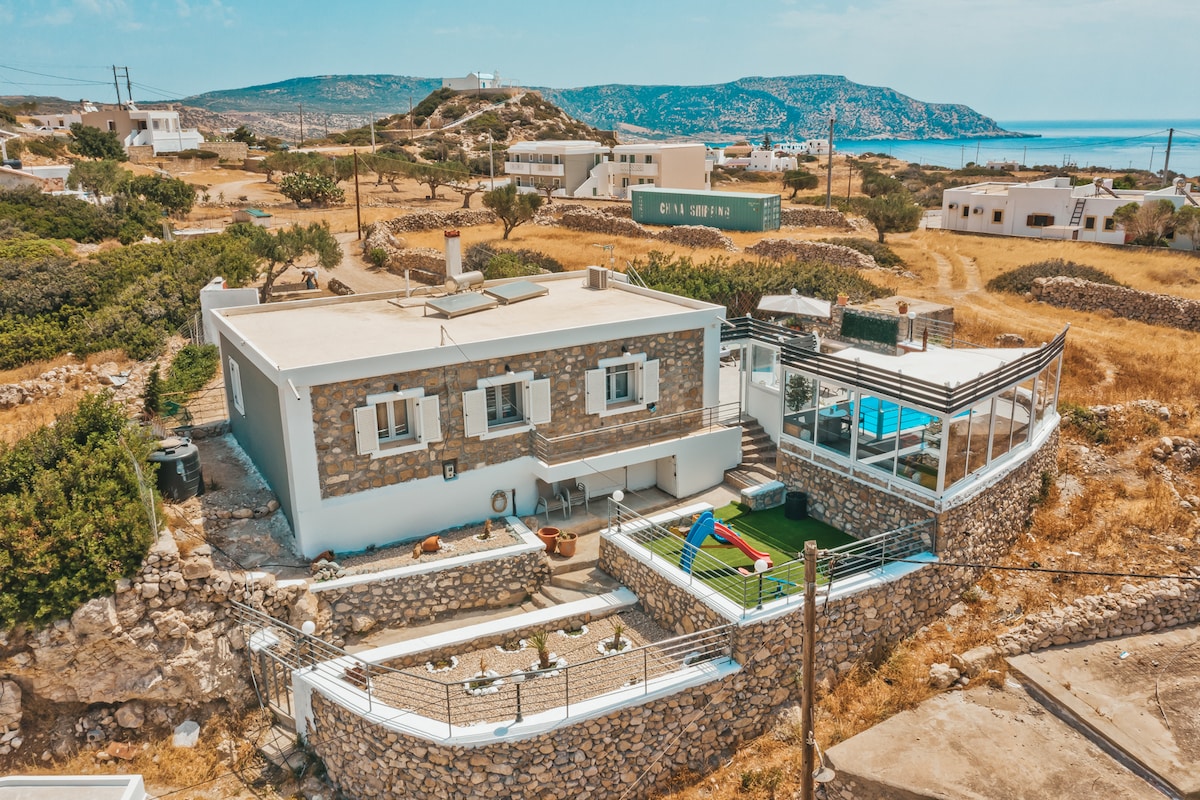 Tógtar Villas Só Mamó i stíl thraidisiúnta na Gréige agus tá siad feistithe go galánta agus maisithe ar fud. Tá cistin, áit itheacháin agus seomra suí nua - aimseartha feistithe go maith i ngach villa chomh maith le hardán atá feistithe go hiomlán, áit ar féidir leat taitneamh a bhaint as deoch fhuar dheas agus tú ag éisteacht le fuaim na farraige. Suiteáladh teilifís chliste le Netflix, Wi - Fi, aerchóiriú agus meaisín níocháin isteach gach villa mar áis duit. Tá ár lóistíní suite i sráidbhaile álainn Finiki