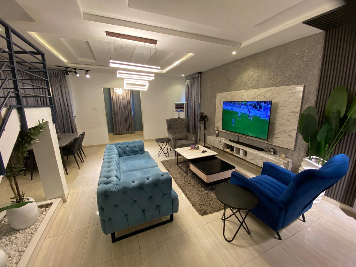 Spacious 2-Bedroom Apartment | 24/7 Reliable Power Perfect for families or corporate travelers. Stay connected with our 24/7 Solar & Inverter system, ensuring lights, high-speed WiFi, TV, and charging ports never go off. Note: To keep our green energy system healthy, AC units and water heaters run exclusively on the main grid (IKEDC). Experience a seamless stay where you’re never in the dark. Book your comfortable, work-ready getaway today!