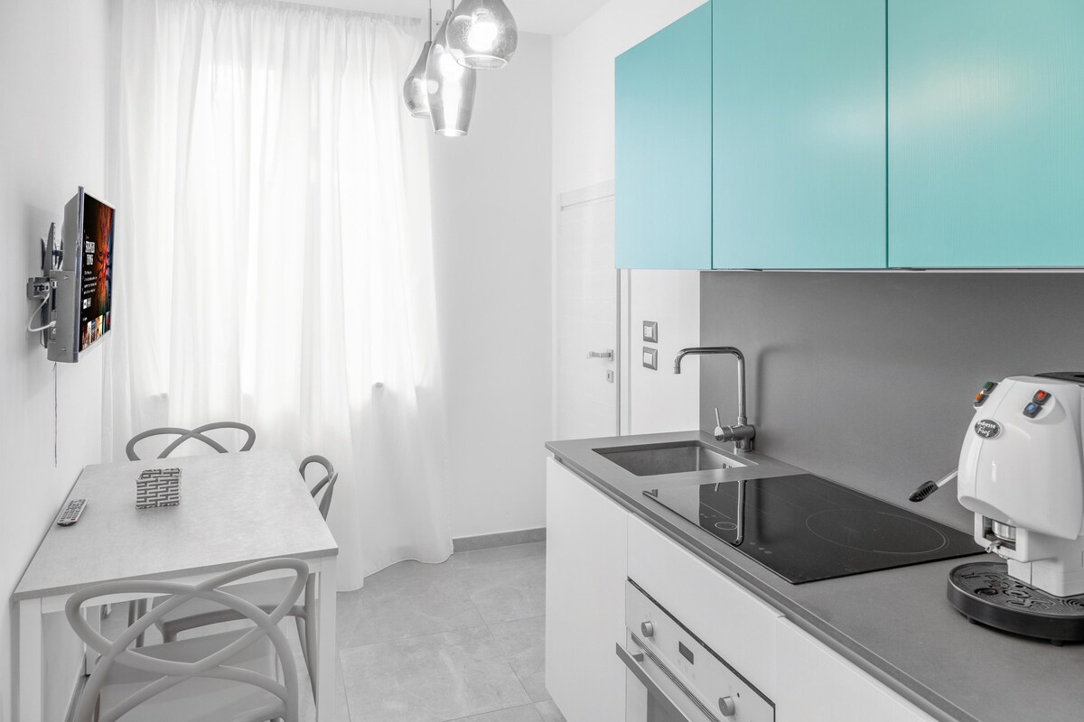 Agropoli, an geata go Cilento, árasán isteach neamhspleách, cistin lánfheistithe, 60 méadar ón bhfarraige san fharraige ghlas, radharc na farraige i gceantar a bhfuil tóir air, 300 méadar ón ionad stairiúil trí Armando Diaz 63, 1 seomra leapa dúbailte, seomra suí ina bhfuil leaba thoilg chistine agus leaba thoilg dhúbailte, seomra folctha, aerchóiritheoir, meaisín níocháin, teilifís, WiFi 336 Mbps In aice láimhe tá 2 thrá (60, 150 méadar), gach siopa ag 300m. Agus an sráidbhaile ársa leis an gcaisleán, lár gníomhaíochtaí cultúrtha agus ealaíne (400m)