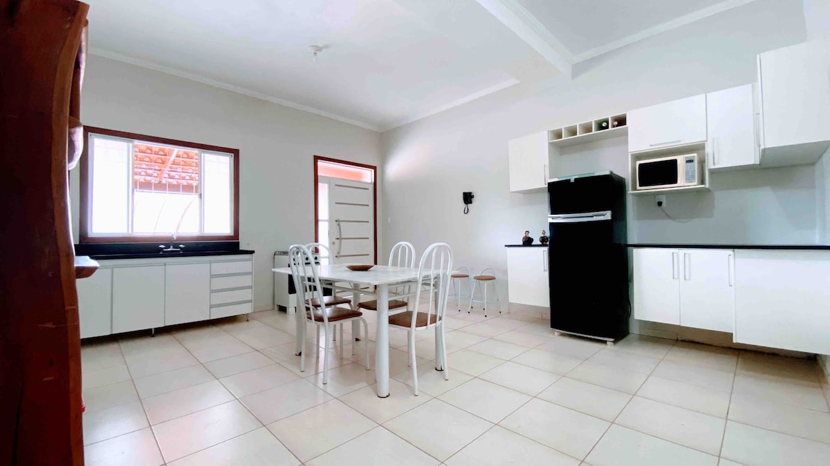 Árasán mór compordach, suíomh iontach: Downtown agus tiomáint 5 nóiméad ó UFLA agus UNILAVRAS Geal agus aerach, suite ar shráid chiúin shábháilte Gnéithe: ► Wi - Fi ►3 sheomra leapa. Leaba dhúbailte svuíte/leathshuite, 1 seomra leapa dúbailte Seomra suí► mór le tolg athléimneach compordach, teilifíseán cliste 55" ► Tá an chistin iomlán comhtháite leis an seomra suí Íontóir ► uisce ► Bord agus cathaoir ardscoile ► Áit gourmet le beárbaiciú agus cuntar ► Línéadach agus línéadach tí ► Triomadóir gruaige