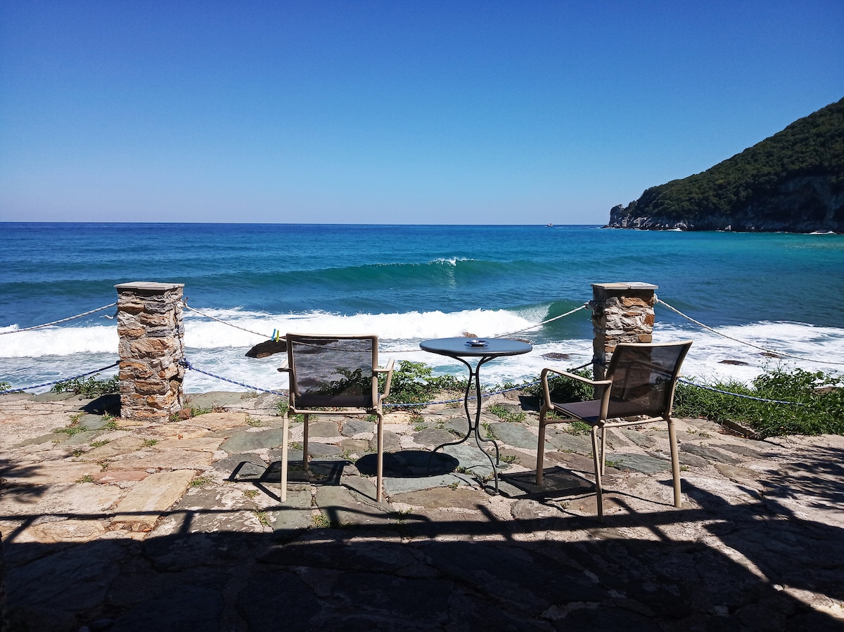 * Tochtanna nua 2025 !* Seanteach dhá leibhéal cloiche athchóirithe i bplota le radharc iontach ar an bhfarraige aegeach atá suite sa chuid is airde den sráidbhaile traidisiúnta Zagora. Rogha iontach do theaghlaigh, do ghrúpa cairde nó do lánúineacha atá ag lorg suaimhnis agus compoird dá laethanta saoire; sa samhradh nó sa gheimhreadh.