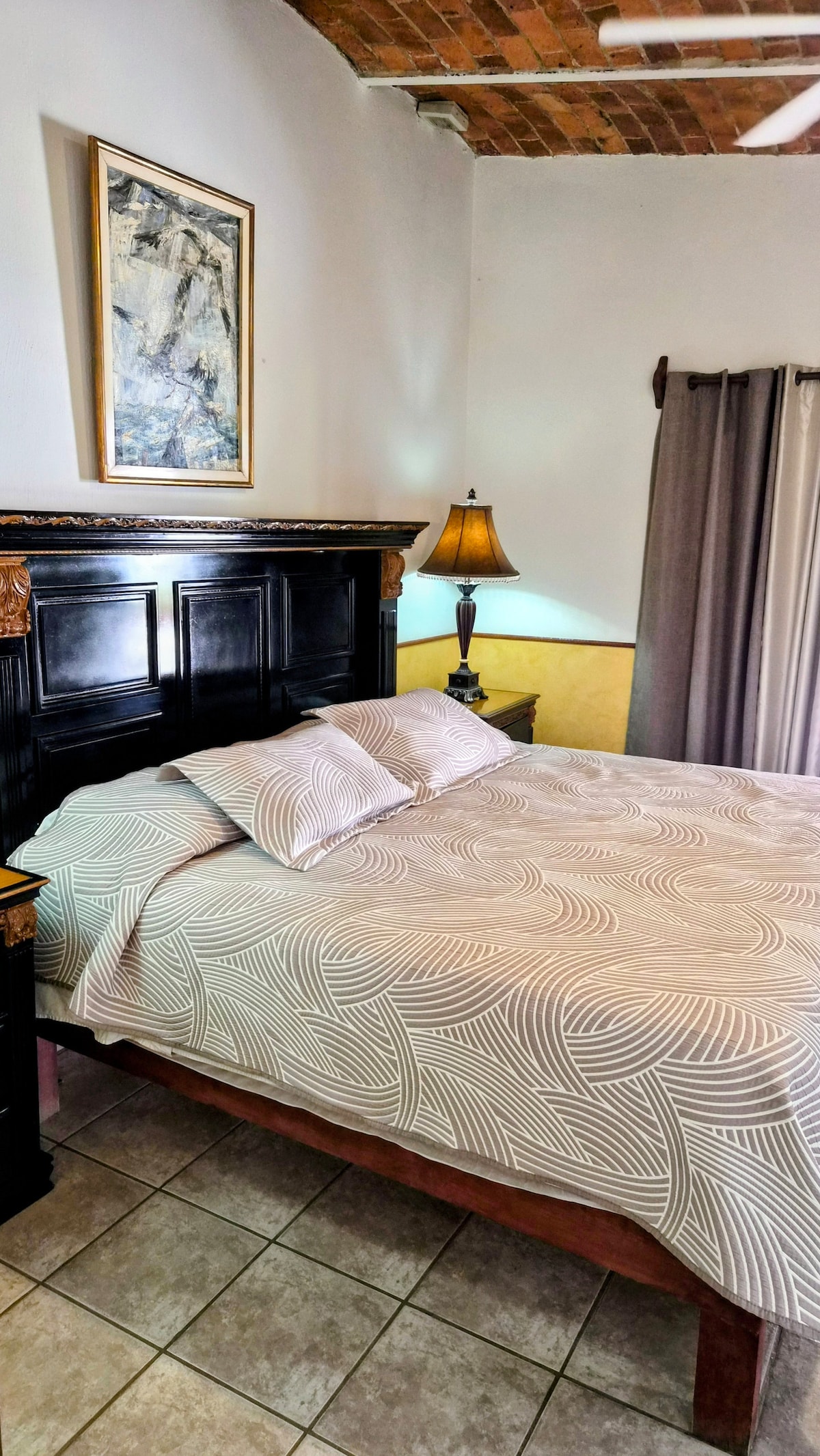 Welcome to Hotel Casa Blanca Ajijic, a boutique hotel where Moroccan design meets relaxed Mexican charm. This Deluxe King Room features a comfortable king bed, private bath, and kitchenette with mini-fridge, sink, and dishes. Enjoy air conditioning, Wi-Fi, flat-screen TV, and bottled filtered water in-room. Guests love the sunny courtyard, rooftop terrace with mountain views, and daily continental breakfast (8:30–11 AM)—just a short walk from Ajijic’s plaza, cafés, and the lakeside Malecón.