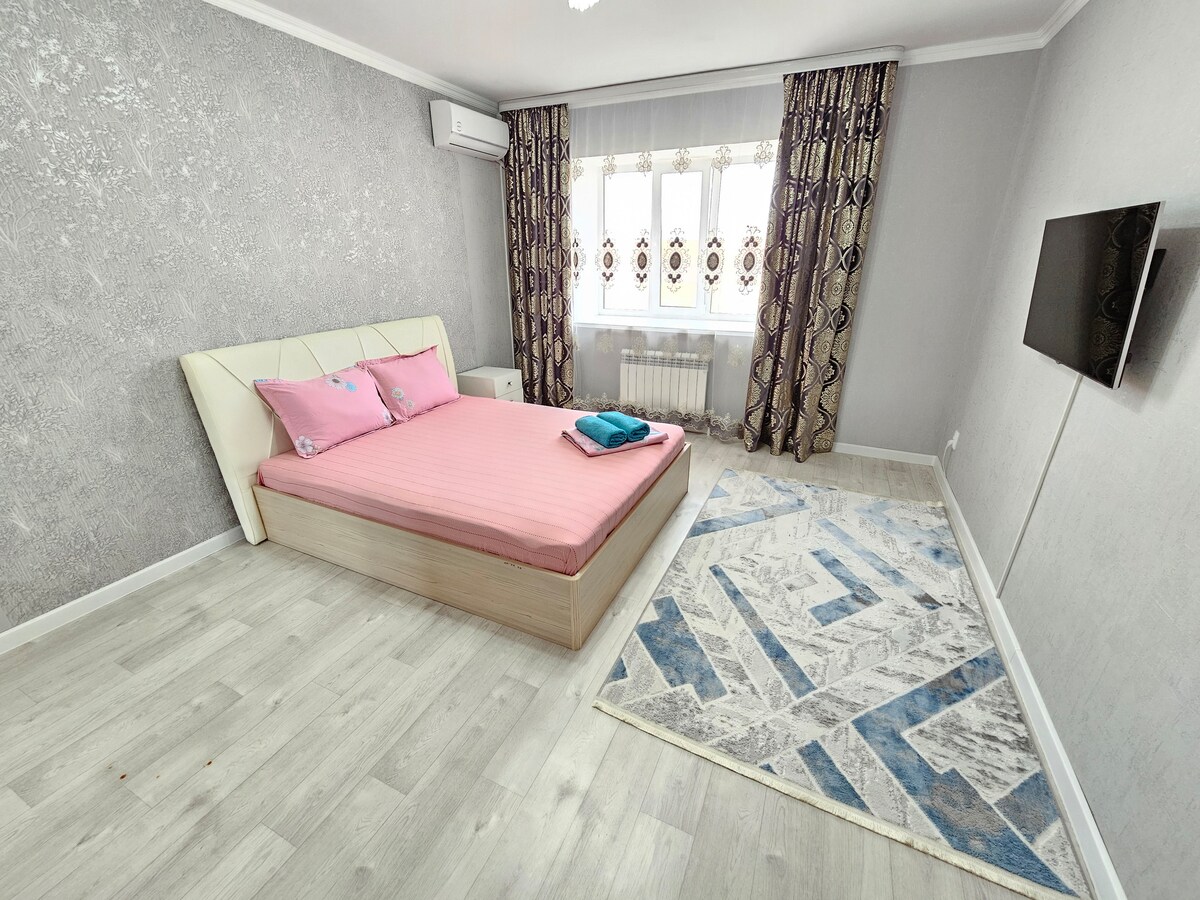 Árasán glan, fairsing agus geal in Aktobe Azhara le radharc iontach ar ascaill lárnach na cathrach. Tá leaba ghlan, tuáillí, táirgí sláinteachais, triomadóir gruaige ann. Laistigh d'achar siúil: Ionad siopadóireachta Sity, ionad siopadóireachta Aktobe - Azhary, páirc uisce Tree of Life, siopa grósaera, seomra bia Aport, bainc, páirc an chéad uachtaráin, Nur Gasyr Mosque, Trk Keruen City, ollmhargadh Anwar, cógaslanna, srl. Bonneagar iompair dea - fhorbartha, tá an teach suite ar phríomh - ascaill na cathrach, stad in aice leis an teach.