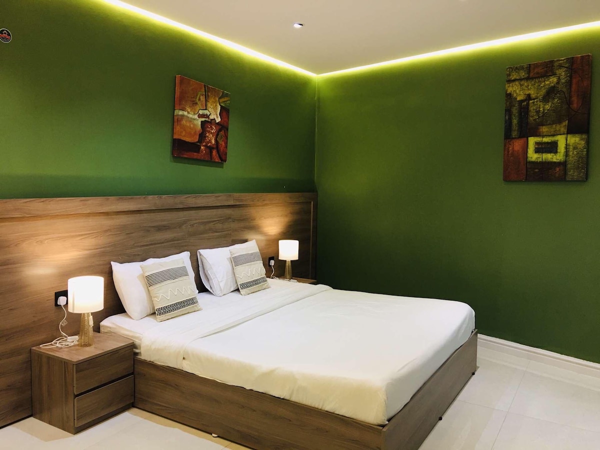 Lig do scíth sa spás uathúil ciúin seo, árasán mór ina bhfuil tolglann agus dhá sheomra leapa ina bhfuil 5 sheomra leapa agus 7~8 nduine ar cuairt . Is éard atá i gceist leis an áit ná go bhfuil sí i gceantar comharsanachta agus meastar go bhfuil sí i lár Al Madinah agus go bhfuil sí an - ghar don Champas Sibhialta faoi 8~12 nóiméad i gcarr. Tá sé an - ghar do Boulevard Al - Oruba freisin, atá dhá nóiméad ón áit chónaithe ansin. Is éard atá i gceist leis an mboulevard ná caiféanna agus bialanna ,chomh maith le háit chónaithe in aice láimhe an stáisiúin traenach chomh maith leis an ionad solais, áit a bhfuil sé 5 nóiméad ar shiúl ag baint úsáid as an gcarr.