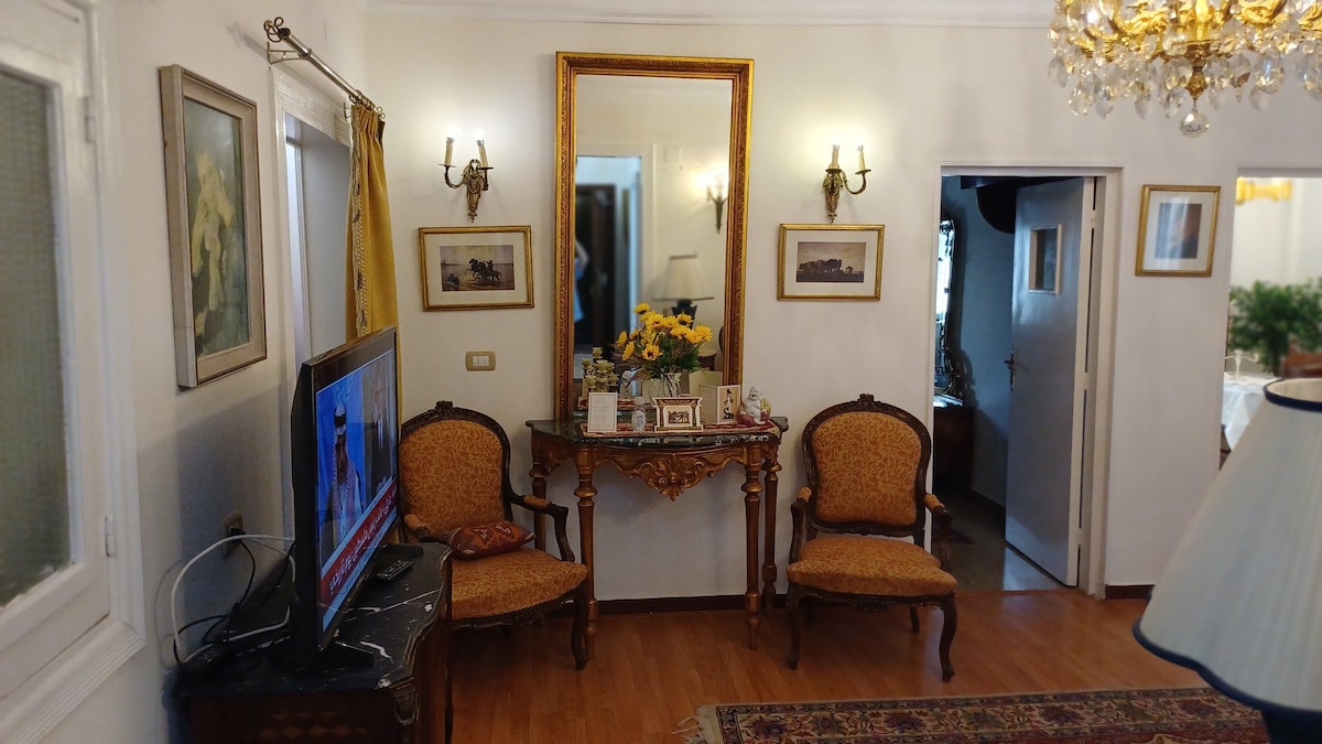 Fan i stíl san árasán Airbnb is áille in Caireo, b'fhéidir, atá suite i bhfoirgneamh luath -20ú haois atá suite sa cheathrú coisithe úrchóirithe i gcroílár Bhaile Caireo - lárionad cultúrtha, airgeadais agus tosaithe na hÉigipte. Le 4 mhéadar ar airde, sonraí ailtireachta athúsáidte, agus meascán de throscán seanda, seanré agus troscán nua, tá 3 bhalcóin, cistin chompordach, agus áit bhreise leaba lochta san árasán dhá sheomra leapa seo.