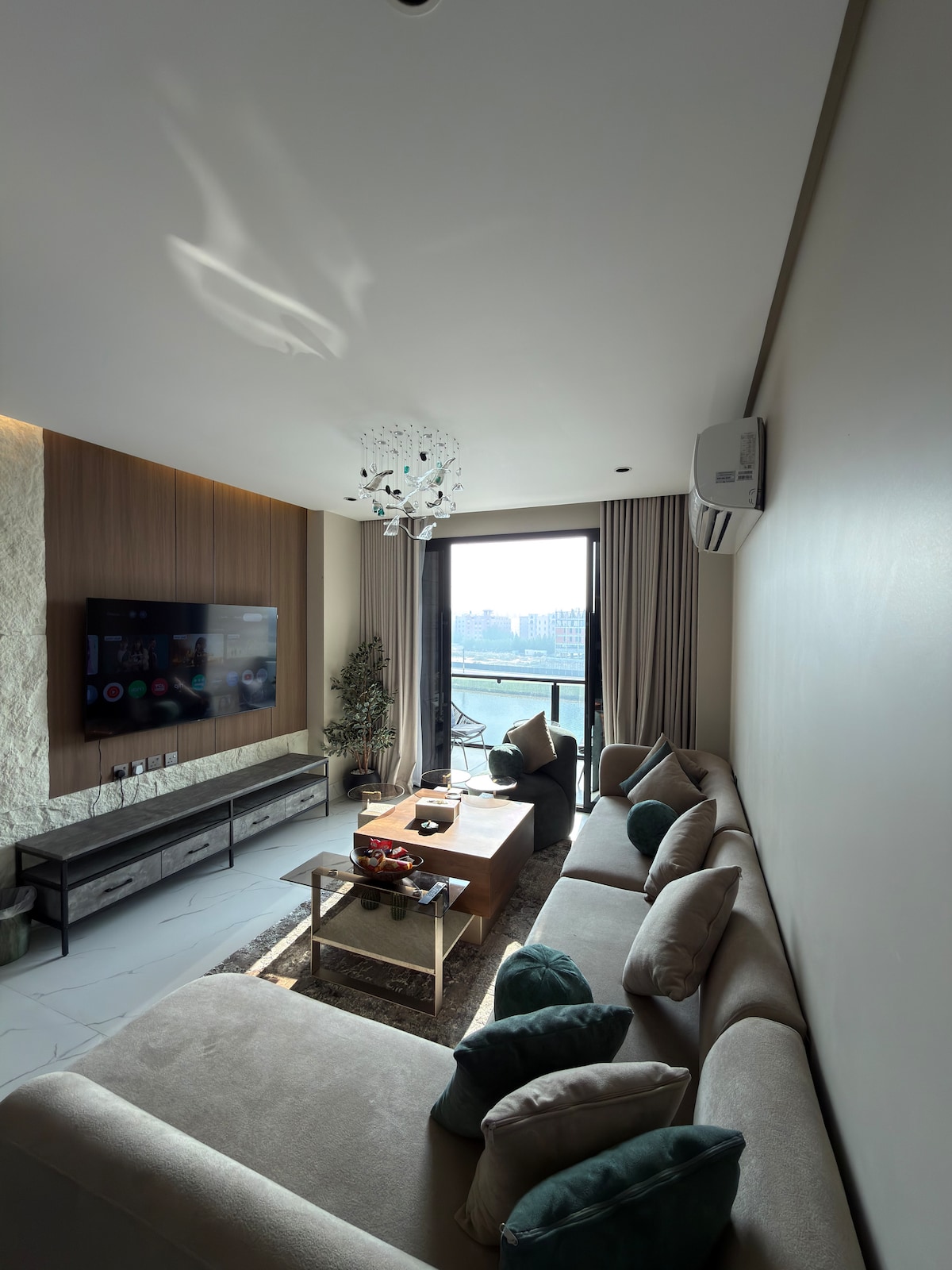 Fáilte chuig do thearmann cois locha! Cuireann an t - árasán dhá sheomra leapa seo atá deartha go hálainn an meascán foirfe de chompord, stíl agus suaimhneas ar fáil. Lonnaithe díreach céimeanna ón uisce, bainfidh tú taitneamh as radhairc lánléargais ar an loch ón mbalcóin phríobháideach - an áit is fearr le haghaidh caife ar maidin nó solas na gréine tráthnóna. Is teach síochánta nó geata galánta é. Tá an t - árasán suite: 3 nóiméad ar shiúl ó King Fahd Causeway 10 nóiméad ar shiúl ó Shiúlóid Ajdan 10 nóiméad ar shiúl ó Khobar cois farraige 34 nóiméad ar shiúl ón Aerfort
