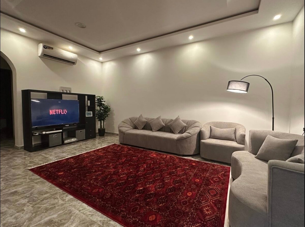 Árasán nua ar urlár na talún ina bhfuil bealach isteach príobháideach le haghaidh príobháideachta agus compoird, ina bhfuil seomra leapa, seomra suí, seomra folctha agus cistin. Tá sé suite i gcomharsanacht chiúin in aice le siúlán Ashrafieh East agus in aice le hollmhargadh, bialanna agus caiféanna. 5 nóiméad ó Al Othaim Mall agus Ospidéal King Saud. Tá sé feistithe go hiomlán agus tá gach rud a theastaíonn ón aoi le haghaidh fanacht foirfe ann