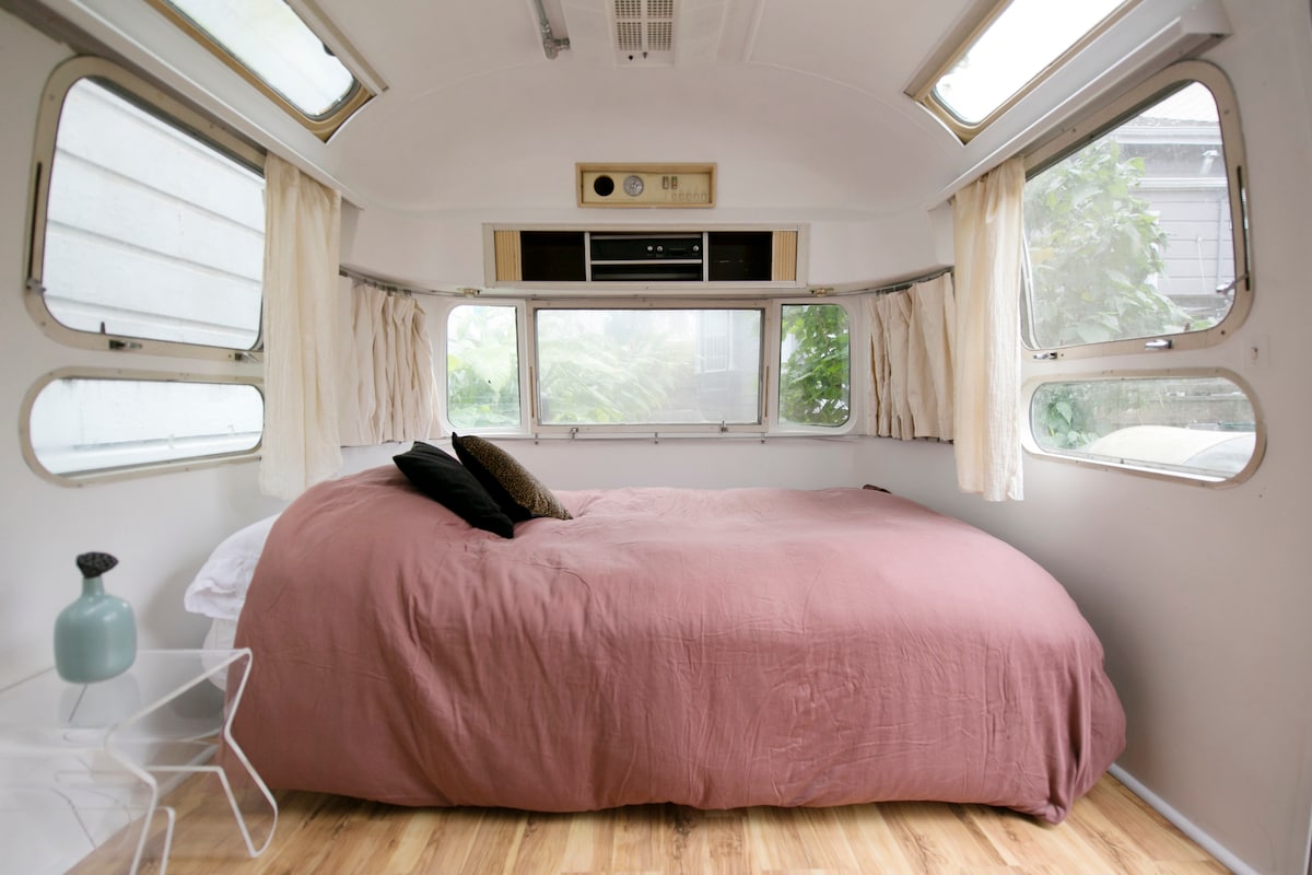 Fan in Airstream íocónach, saincheaptha atá faoi thiomáint na gréine, suite i gcúlchlós álainn in Berkeley idir Elmwood agus Rockridge. Tugann an teachín beag seo, atá deartha go cúramach, eispéireas uathúil do dhaoine a bhfuil dúil acu in Airstream agus do thaistealaithe eachtrúla, le háit chompordach chodlata, cistinéad, agus seomra folctha ar nós spá ina bhfuil bidé. Bain sult as clós mór comhroinnte ina bhfuil tobán te agus suíocháin—foirfe chun do scíth a ligean tar éis duit Bay Area a iniúchadh. Neamhchoitianta, speisialta, agus éagsúil.