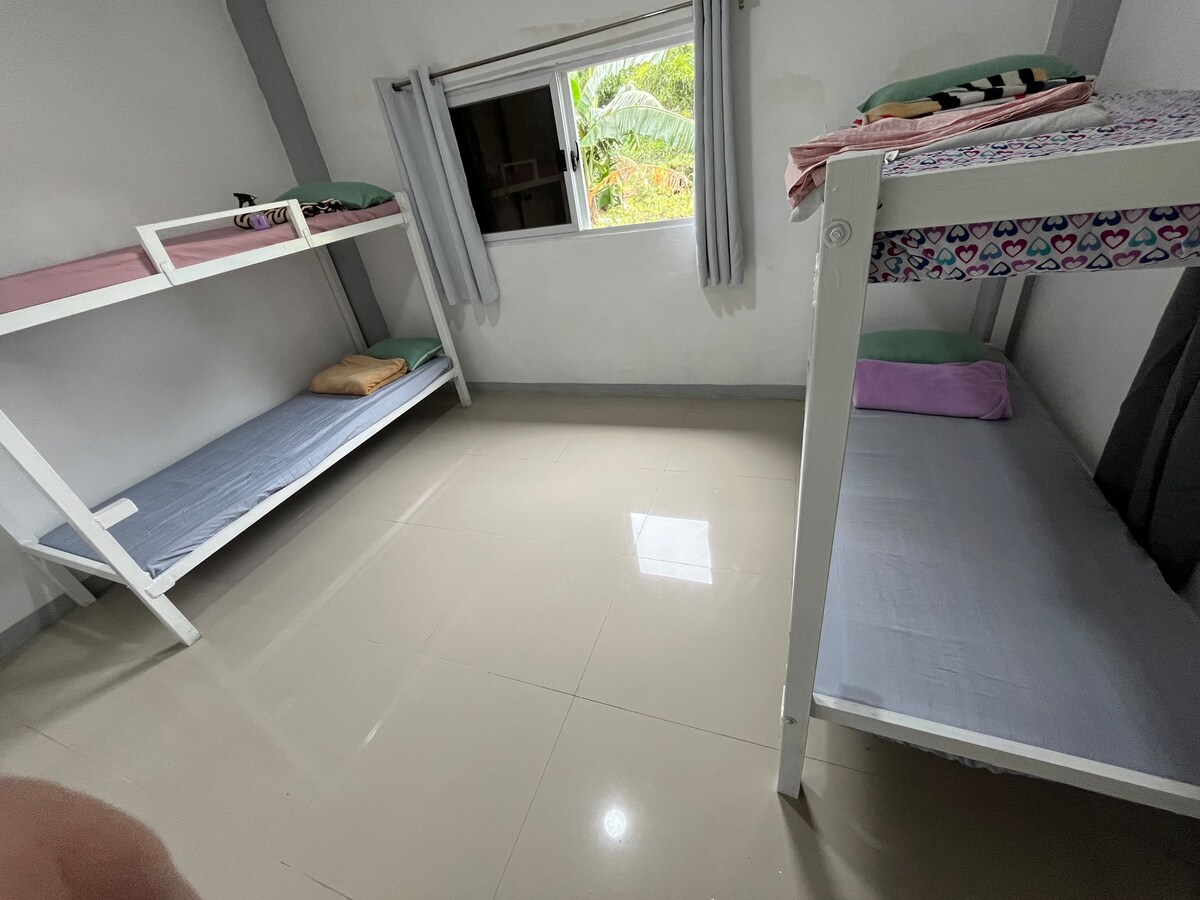 1 seomra leapa w/leaba de mhéid banríona agus leaba shingil (mar leaba bhuinc) 1 Seomra folctha Sorn Gáis Mionchuisneoir Siúlóid 1 nóiméad go Fora Dagupan (taobhgheata) Siúlóid 5 nóiméad go dtí an príomhbhóthar, 7/11, Angel's Pizza, Pan de Manila Siúlóid 8 nóiméad go Uson Pigar - Pigar, Dunkin, Mercury Drugstore, Jollibee, CSI City Mall 1 fheithicil Páirceáil Sráide saor in aisce (páirceáil ar do phriacal féin) Tá an bunráta le haghaidh 3 pax Tabhair do d'aire, le do thoil: Cuirfear tuáillí ar fáil ach ní chuirfear earraí níocháin ar fáil. Is féidir le duine breise os cionn 3 pax fanacht le haghaidh PHP350 (cuirfear tocht urláir ar fáil)