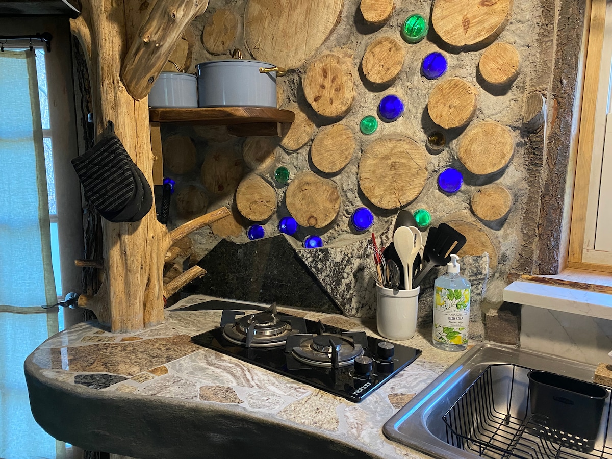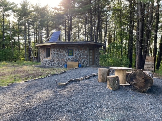 Tar éis cúig bliana, tá an obair ealaíne seo críochnaithe faoi dheireadh! Tógadh an foirgneamh éiceabhách seo den chuid is mó le hábhair ónár bhforaois. Bhí lámh ag beagnach 200 oibrí deonach ag cabhrú thar na blianta ina thógáil. Tá sé tógtha le masonry cordwood, babhta agus uathúil. Is feirm orgánach atá ag obair 225 acra agus homestead a fhásann cuid mhaith dár mbia féin. Taitneoidh ár n - ainmhithe cairdiúla, oibrithe deonacha agus na mílte cosán fánaíochta go mór leat. Is cábán gréine as greille é seo ina bhfuil teach amuigh in aice láimhe.