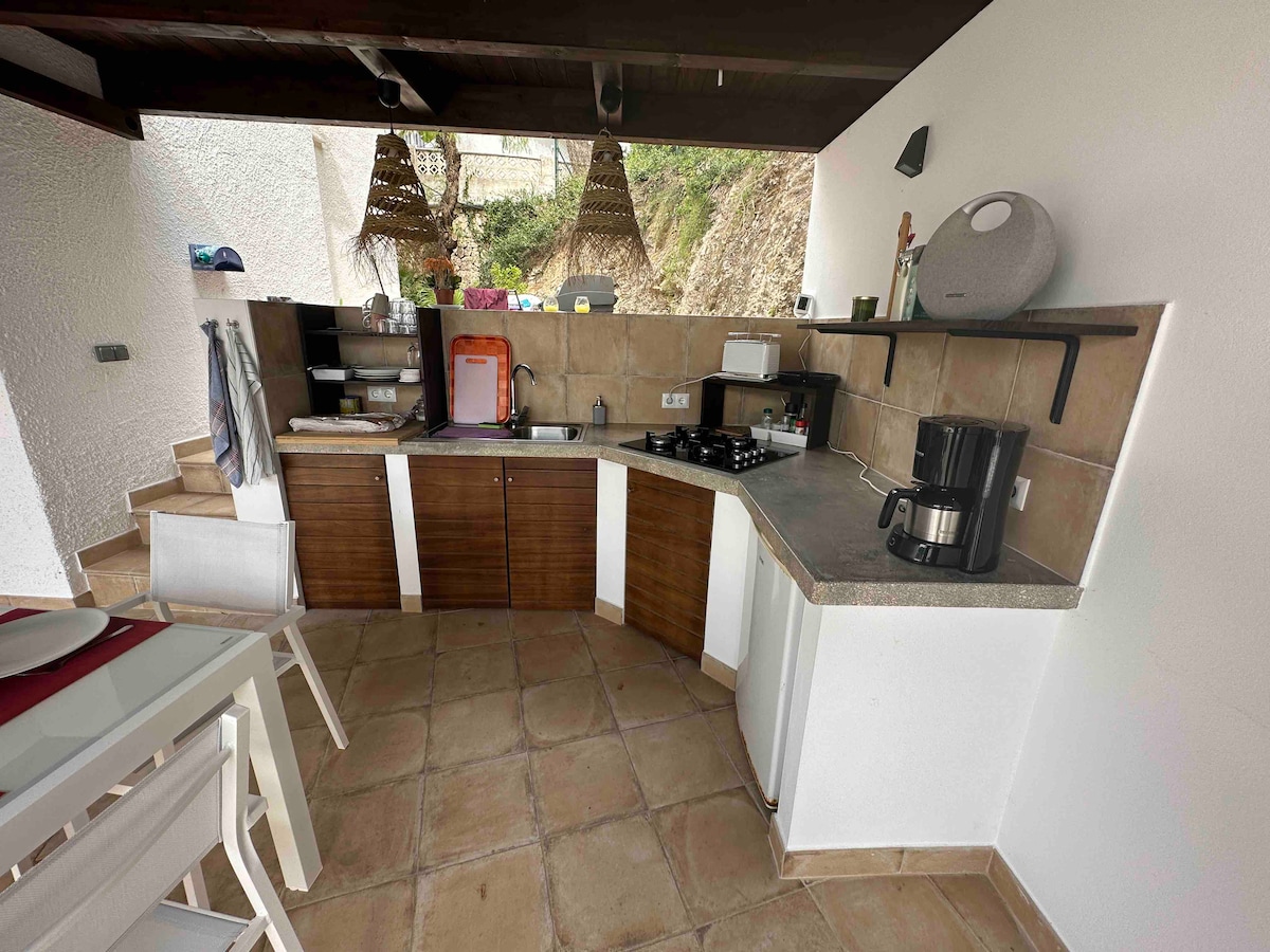 Bienvenidos ag Casa de amigos!!! Árasán álainn 2 -4 dhuine comhdhéanta de: dhá sheomra leapa, seomra folctha, cistin lánfheistithe, seomra suí, ardán leathchlúdaithe atá os comhair soir ó dheas le radhairc iontacha den Mheánmhuir. Rochtain dhíreach ar linnte éigríche agus ar linn snámha chéaslóireachta araon. Athchóirithe go hiomlán in 2019, tá sé aerchóirithe agus feistithe go foirfe (meaisín níocháin, miasniteoir, triomadóir gruaige, díritheoir, cuisneoir mór, reoiteoir, teilifíseán, Wi - Fi...) Ag súil le fáilte a chur romhat!