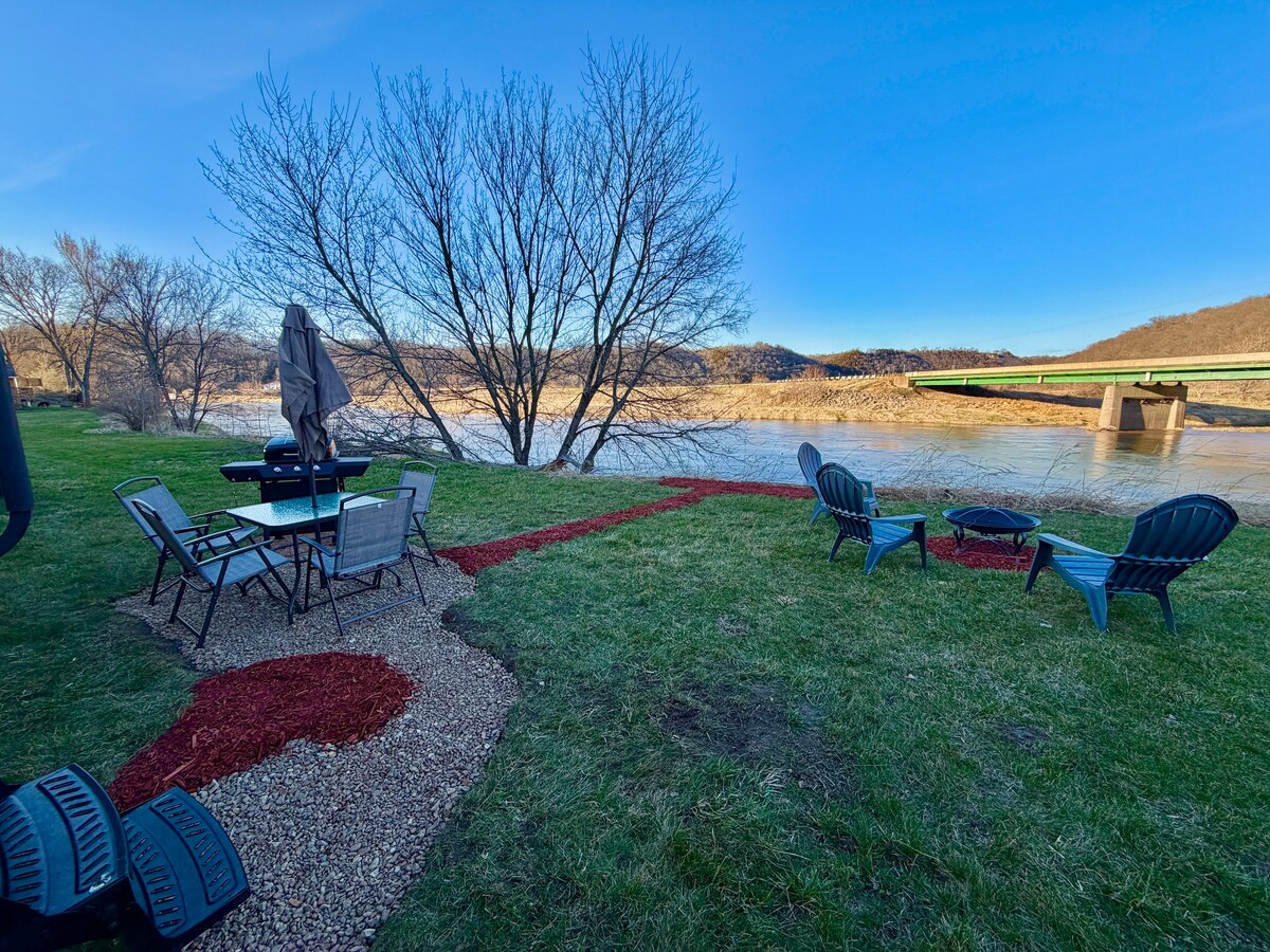 Beidh cábán príobháideach nua - aimseartha le ceann de chineál Bluff agus radharcanna abhann iontas ar fad. Ligfidh suaimhneas ciúin Abhainn Mississippi duit dícheangal ó lá go lá. Ligfidh plean urláir oscailte le dhá dheic mhóra do thaitneamh a bhaint as géarchéimeanna gréine agus tú ag baint sult as do chaife maidine nó as na seiteanna gréine agus tú ag ligean do scíth ó eachtraí do laethanta sa cheantar. Turas gairid chuig Foraois na hAbhann Buí, Pikes Peak, Effigy Mounds, agus Spook Cave.