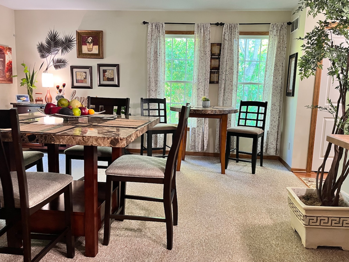 Teach álainn Restored Century ceart i lár bhaile Conneaut. Earraí grósaera, Giomnáisiam, Bialann/Beár, Eaglais na Carraige agus go leor eile laistigh de 0 -2 bhloc! 2 Seomra Leapa le Queens Compordach, Seomra Folctha OLLMHÓR, Cistin Mhór agus Barra Íoslaigh! Nóiméid ó Loch Erie Beaches/ Marina agus bialanna. Déantar ár dteach a ghlanadh agus a shláintiú go cúramach idir aíonna. Is teach neamhspleách é seo ina bhfuil a bhealach isteach príobháideach féin.