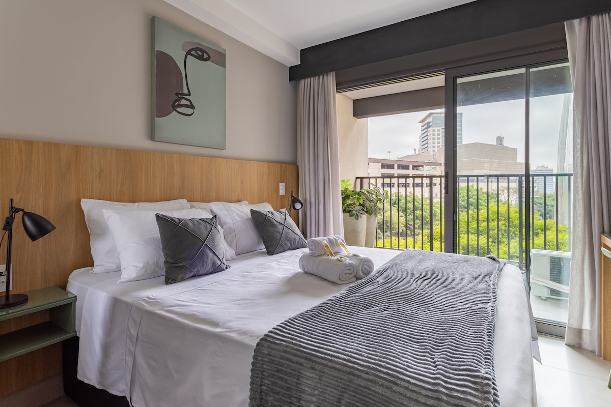 Stiúideo nua-aimseartha, mór agus dea-fheistithe. Suite in Perdizes, cúpla troigh ó Pháirc Allianz. Tá an stiúideo foirfe dóibh siúd atá ag lorg praiticiúlacht agus compord, tá sé iomlán agus tá timpeallacht réidh chomhchuí ann le leaba Mhór agus bord dinnéir do bheirt. Tá cistin iomlán ann ina bhfuil uirlisí ardchaighdeáin. Tá seomra folctha fairsing, aerchóiriú agus garáiste saor in aisce ann freisin. Beidh rochtain ag aíonna ar an linn snámha, ar an ionad aclaíochta agus ar an níochán freisin.