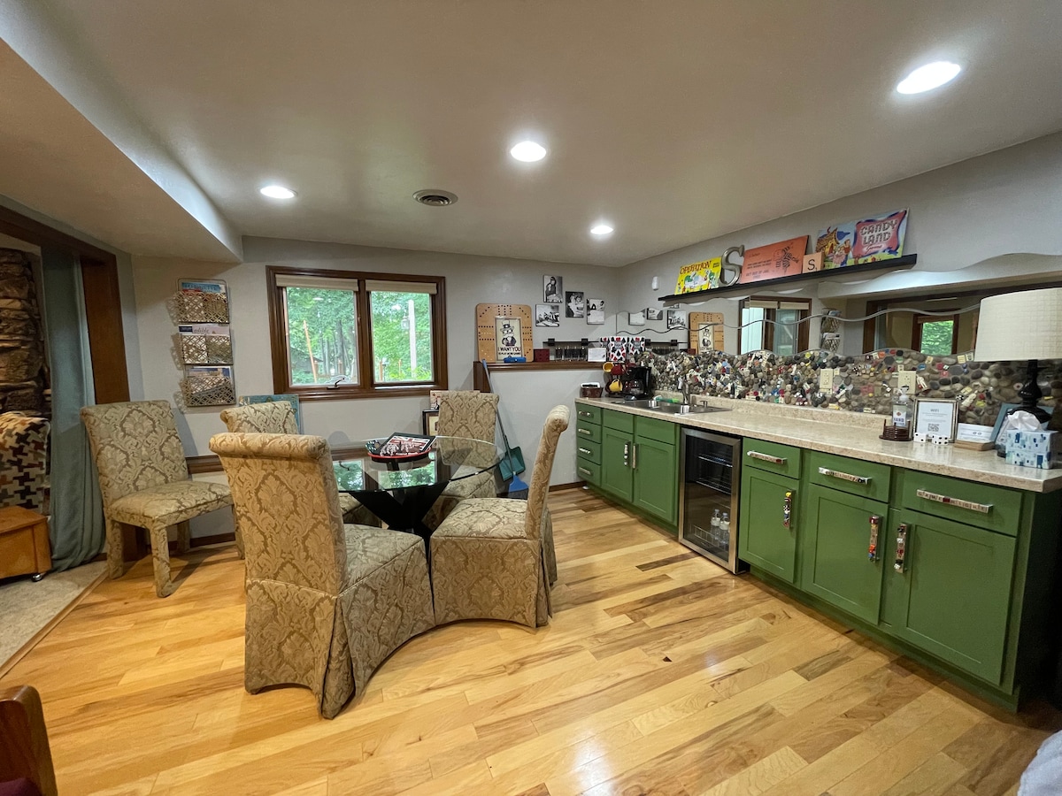Lig do scíth agus bain sult as i dteach álainn álainn atá suite go háisiúil i gcomharsanacht chiúin choillteach in Appleton. Tá na gnéithe go léir ann a bhaineann le bheith ar do shuaimhneas. Beagnach 3,000 troigh cearnach. Tá rochtain ag aíonna ar gach áit suí, cistin nua - aimseartha, teallach mason iomlán, síleálacha boghtaí, deic mhór agus tobán te. Bain sult as an gcúlchlós le deic mhór, tobán te 7 nduine agus poll dóiteáin lasmuigh. Cúig nóiméad. ó Aerfort, Downtown, 25 min. go Lambeau agus 20 min. go EAA. Tá caife agus bricfeasta san áireamh.