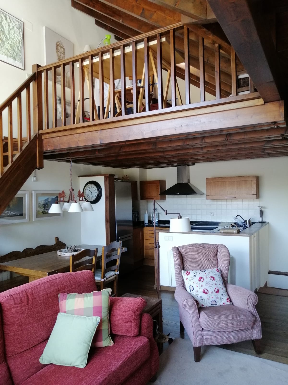 Lonnaithe taobh amuigh de gráigín beag ciúin (800 méadar ar airde) ag deireadh bóthar foirceannadh, is maith leis an scioból atá os comhair an deiscirt radhairc lánléargais ar na sléibhte, agus tá páirceanna agus coillte thart air - gan aon vis - à - vis! Agus é athchóirithe go hiomlán ag baint úsáid as ábhair éiceolaíochta, coinníonn an gîte draíocht agus barántúlacht uile cónaithe Pyrenean, ach le compord uile gite a tógadh le cuspóir. Freastalaíonn an scioból ar gach duine – lánúineacha, lánúineacha aonair, teaghlaigh le leanaí, agus siúlóirí lena gcairde ceathairchosacha.