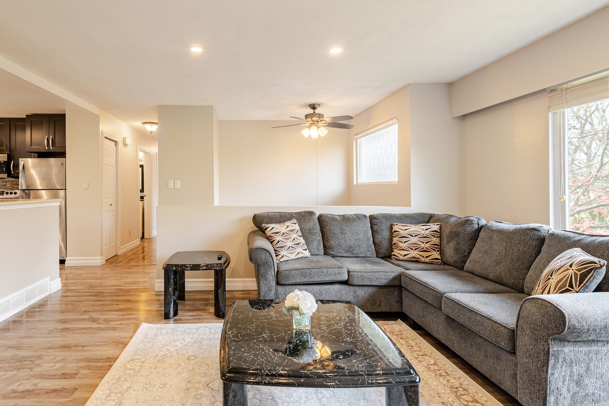 Svuít theolaí nua - athchóirithe 1 sheomra leapa ar urlár na talún ina bhfuil bealach isteach príobháideach, cistin iomlán, cithfholcadán siúil isteach, agus níochán ar an láthair. Codlaíonn sé suas le 4 leaba bhanríona, leaba thoilg, agus leaba fhillte. Bain sult as páirceáil saor in aisce, spás atá oiriúnach do pheataí, agus décor te. Siúl chuig grúdlann, páirceanna agus cosáin. Comharsanacht chiúin shábháilte - foirfe do shaoirí gearra nó do thurais ghnó. Miontuairiscí ó shiopadóireacht, ó bhia, agus ó Pháirc Golden Ears. Níl aon chóisirí ann