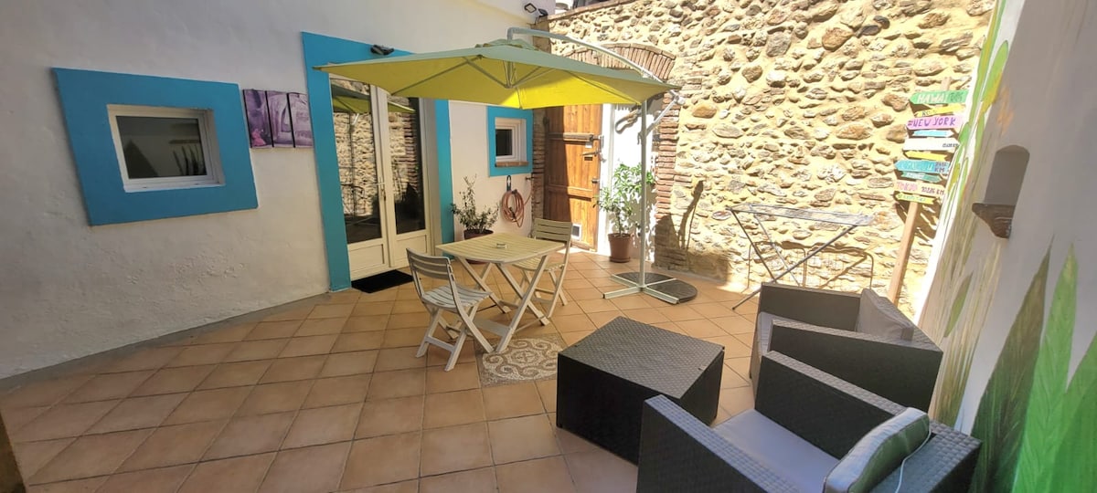 Más mian le beirt nó ceathrar teaghlach éalú, féach cur síos ar an lóistín atá suite go hidéalach idir an fharraige agus an sliabh ag doras na Spáinne i gcroílár Thír na Catalóine, tá an t-árasán gleoite agus compordach seo, rangaithe mar Meublé Tourisme 4 réalta, suite ar urlár na talún inár dteach cónaithe i Banyuls-Dels-Aspres i ngiúmar te.