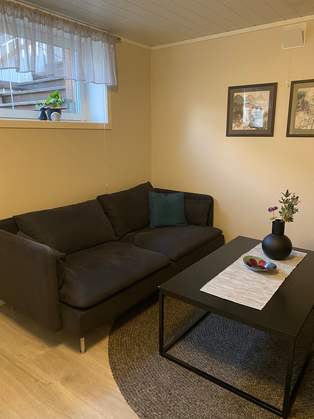 Árasán stoic ina bhfuil bealach isteach príobháideach, seomra leapa, seomra suí, cithfholcadán, sabhna agus leithreas. Sa seomra suí tá cuisneoir, micreathonnán agus citeal. Sa seomra suí freisin tá leaba thoilg ar féidir í a úsáid mar leaba. Maidir le daoine atá ag fulaingt ailléirge, tabhair faoi deara go bhfuil madra thuas staighre. 5 nóiméad le siúl go lár na cathrach, le stáisiún bus, siopaí agus bialanna. 10 nóiméad chuig Finnmarkshallen, UiT agus áiteanna fánaíochta. Páirceáil le haghaidh carrchlós ar an réadmhaoin. Is féidir rothar agus gluaisrothar a pháirceáil sa gharáiste faoi ghlas. Luchtaire carranna leictreacha sa cheantar láithreach.