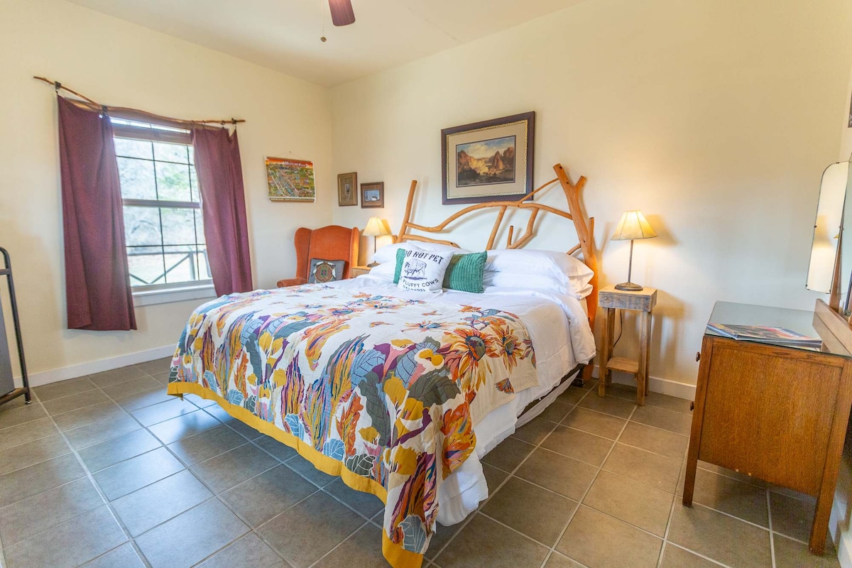 Neadaithe i measc The Wichita Wildlife Refuge agus Downtown Medicine Park, tá Tobán/Linn Snámha Príobháideach faoi Dhíon, Sabhna Príobháideach, Spórtlann, 2 Sheomra Leapa le Leapacha Rí, 2 Sheomra Folctha iomlána le cithfholcadáin agus balcóin radhairc sléibhe le feiceáil sa tearmann suaimhneach ÚRNUA seo. An dteastaíonn níos mó spáis uait? Lóistín suas le 8 gcinn. Cuir an dá theach in áirithe ar an réadmhaoin chéanna ag Soak Haus Balance Siúlóid 5 Nóiméad go Páirc Leighis Downtown Céide 6 Nóiméad go Loch Lawtonka Céide 6 Nóiméad go Sléibhte Wichita Céide 15 Nóiméad go Fort Sill Tiomáint 20 Nóiméad go Lawton