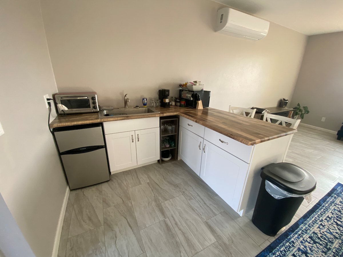 Tá sé iontach do 2 aoi, ár gcasita fairsing suaimhneach ina bhfuil leaba bhanríona, seomra folctha príobháideach, seomra suí le teilifís agus Wi - Fi, spás beag oibre, agus cistin iomlán. Roinneann an casita paitió mór oscailte le teach an úinéara, ina bhfuil radhairc iontacha ar Shléibhte Santa Rita, neart suíocháin, bord bia lasmuigh, agus beárbaiciú. Is siúlóid nó tiomáint ghearr 0.6 míle é Ionad Saoire Gailf Tubac, tá Tubac Village agus an Tubac Presidio thart ar 1.5 míle, agus tá Misean Tumacacori 4.5 míle.