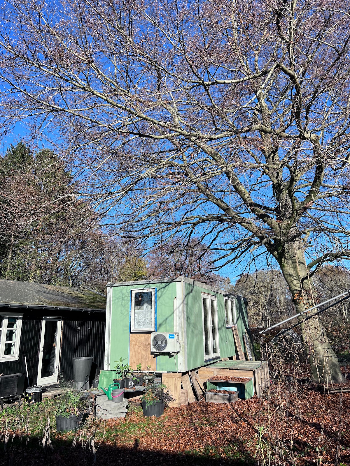 Tiny house i stor have tæt på København.