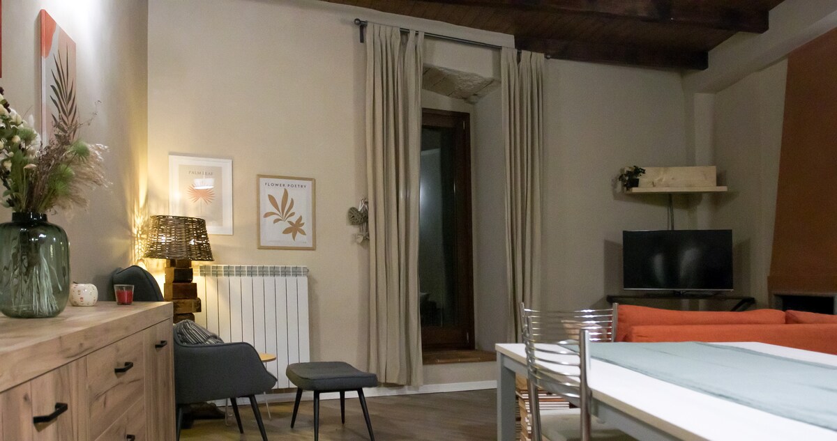 Árasán stiúideo compordach agus an - gheal le radharc lánléargais ar choillte darach agus ar chúrsa Rio Grande, atá suite i gceann de na cearnóga is áille i lár stairiúil Amelia, Piazza Guglielmo Marconi , atá feistithe le cistin lánfheistithe le cuisneoir, oigheann micreathonnach agus iarta; leaba mhezzanine le futon dúbailte; seomra folctha le leithreas, bidet agus cithfholcadán; tábla insínte, cathaoireacha; stóil, cathaoireacha tolg; vardrús; 2 theilifíseán satailíte; aerchóiriú, wi - fi iniompartha.