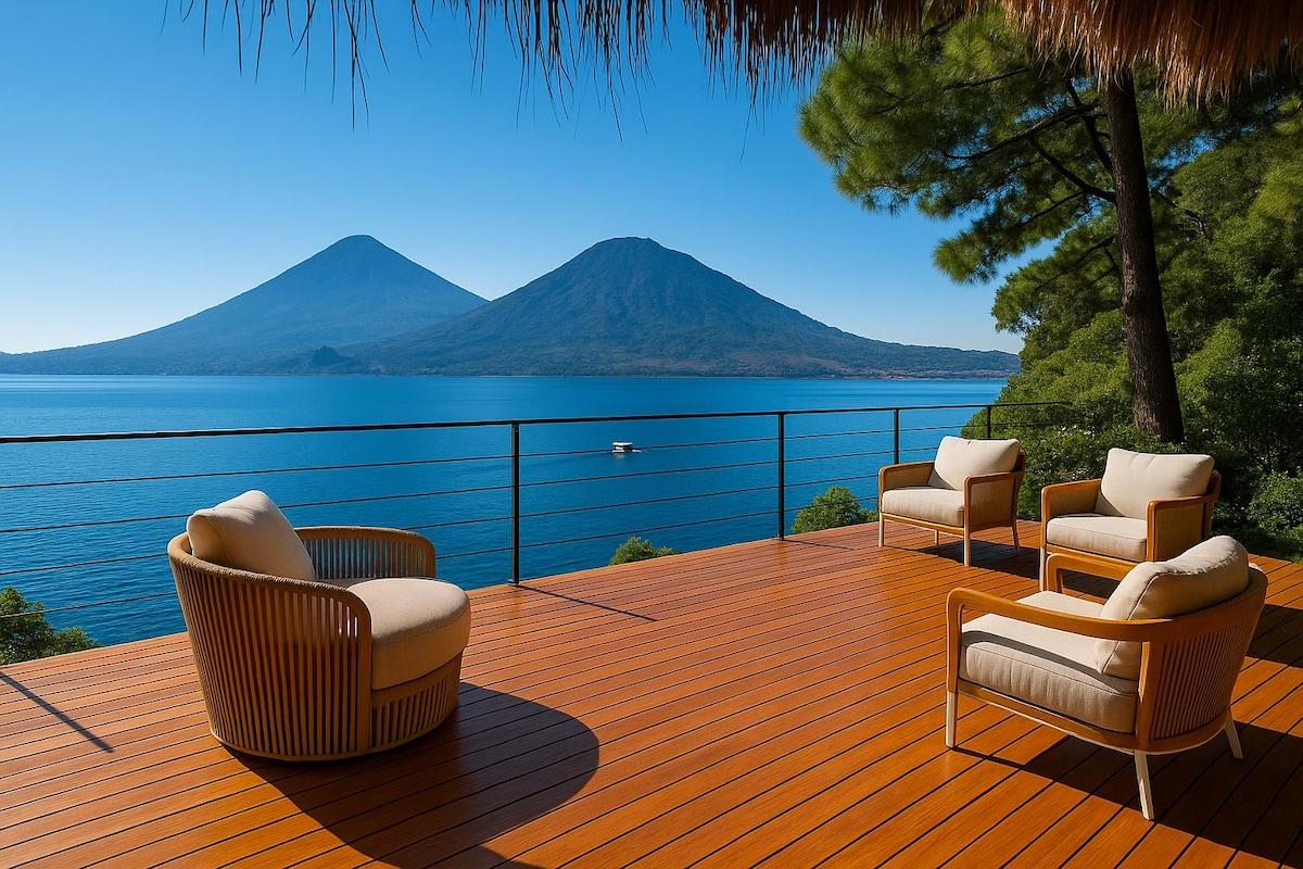 RADHARC COIS LOCHA! IG: @Lakeviewontherocks Bain sult as suaimhneas an villa atá suite i gcaorán príobháideach ar bhóthar dromchla crua thart ar 1/4 mhíle ó shráidbhaile gleoite San Antonio Palopo. Is réadmhaoin an - chúlráideach í gan aon "chomharsana" ar an dá thaobh. Ar an taobh thoir tá an bog ag sileadh Abhainn Parankaya. San iarthar tá tailte neamhfhorbartha atá mar chuid de thailte an villa freisin. Tá an Villa go hiomlán Iontach. Tá sé Paradise. Radhairc Bolcáin! 1 cheamara lasmuigh den ghairdín/loch.