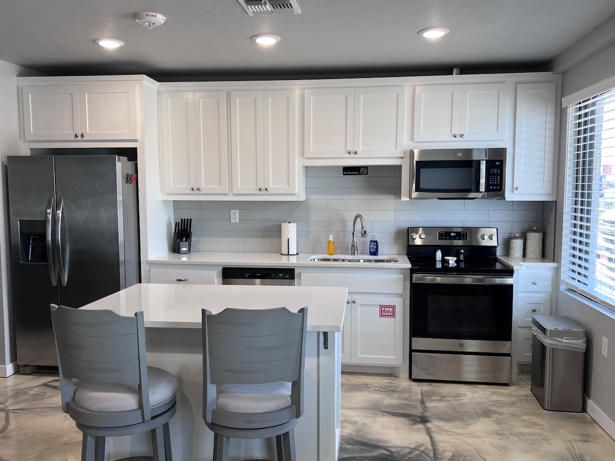 Tá “Teach Grandma” as baile! Suite go háisiúil síos an tsráid ó Pháirc an Chéid, & 1 mhíle ón Lampa Cosa, Féile an tSolais, Fairgrounds, USAO, & Coimpléasc Spóirt! Agus tú ag teacht isteach, tugtar ar ais in am thú láithreach chuig teach do sheanmháthar - agus seomra suí teolaí agus cistin romhat. Tá cithfholcadán siúil isteach agus síleáil choillteach sa seomra folctha chun teagmháil bhreise a dhéanamh leis. Téigh taobh amuigh ar an bpaitió chun scíth a ligean don tráthnóna. Is cinnte go gcuirfidh an áit seo ar do shuaimhneas thú