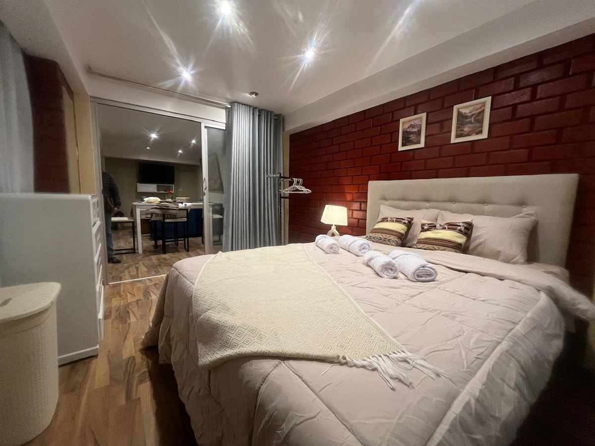 Lochtaí áille le teagmháil Andean suite ar an 5ú urlár le radharc iontach ar na sléibhte sneachtúla agus ar chathair álainn Huaraz, Lonnaithe i gceann de na ceantair chónaithe is áille agus is sábháilte in Huaraz agus é cóngarach do lár na cathrach faoi 10 nóiméad ag siúl chuig an bpríomhchearnóg agus gar do na nithe is tábhachtaí do thurasóirí.