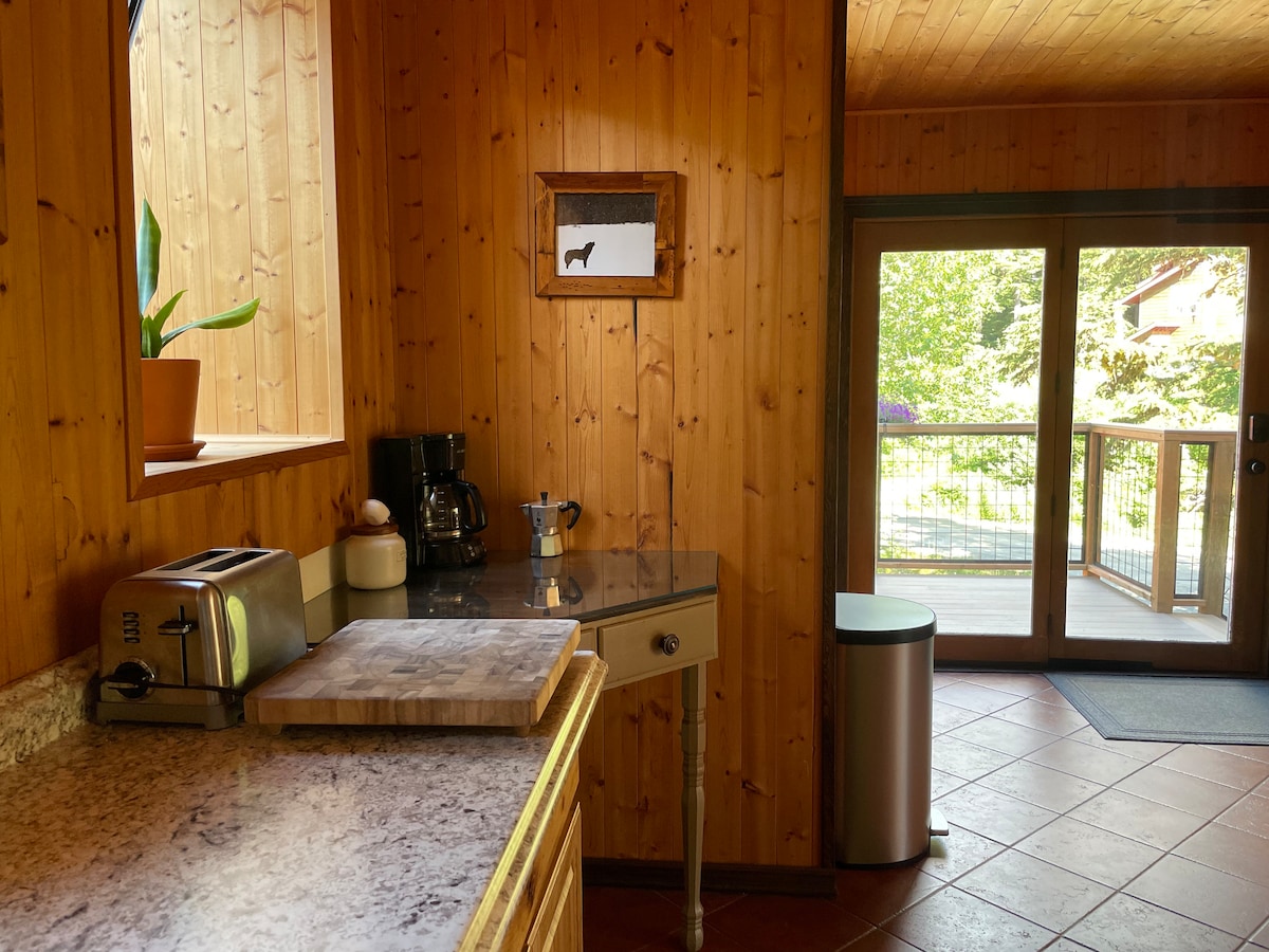 Tá sé mar aidhm againn go mbraithfidh tú go bhfuil tú ag tabhairt cuairt ar do theaghlach. Tá clós fairsing ag an réadmhaoin ina bhfuil luascán agus bosca gainimh do pháistí. D'fhéadfadh Pat fáilte a chur romhat nuair a thiocfaidh tú agus bíonn sé sásta i gcónaí a ghrá d'Alasca agus léargais áitiúla a roinnt. Baineann aíonna taitneamh as Wi-Fi tapa, rochtain áisiúil ar níochán, agus an deis fiadhúlra áitiúil a fheiceáil díreach taobh amuigh den doras cúil — mias (le laonna go minic), préacháin, gealáin Steller, ioraí, agus béar ar uairibh. Cuirimid go leor acmhainní ar fáil freisin chun cabhrú leat d'fhanacht a phleanáil.