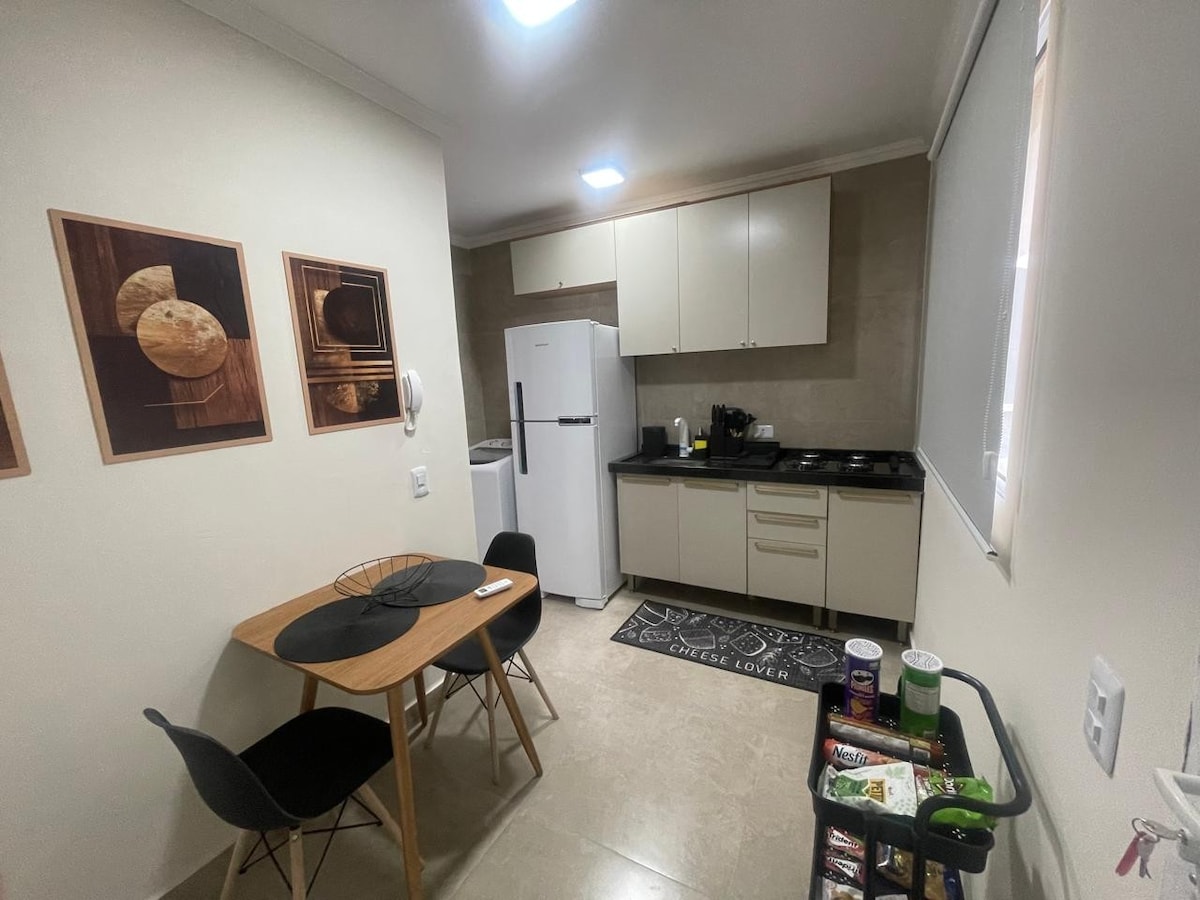 Studio. Next UFMS AEMS and HAVAN. LUXURY DOUBLE BOX BED and LUXURY SINGLE BOX BED with 100% cotton sheets and soft towels. Table with chairs and open closet with shelves and clothes rack. Kitchen: minibar stove cooktop coffee maker kettle sandwich maker rice cooker frying pan and kitchen kit. Air Conditioning 12 thousand BTUs. Swimming pool without bars, shared garage and laundry room with garden. Cleaning and linen change every 7 days! Price for one person (Maximum capacity 3 people)