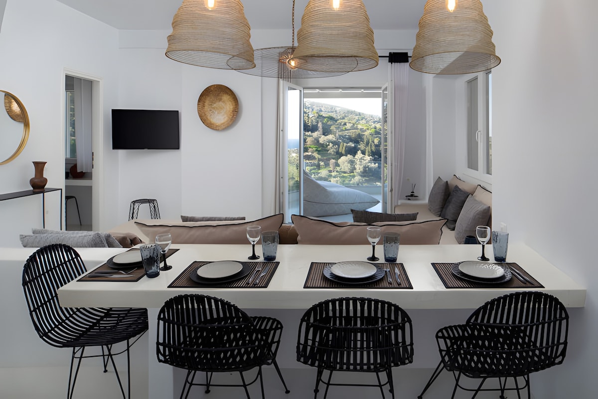 Villa Sarakiniko: Your Stylish Retreat with Aegean Views Welcome to Villa Sarakiniko, where modern elegance meets the timeless beauty of Andros. Perched on a hillside overlooking the azure Aegean Sea, our fully renovated retreat invites you to experience the best of Greek island living.