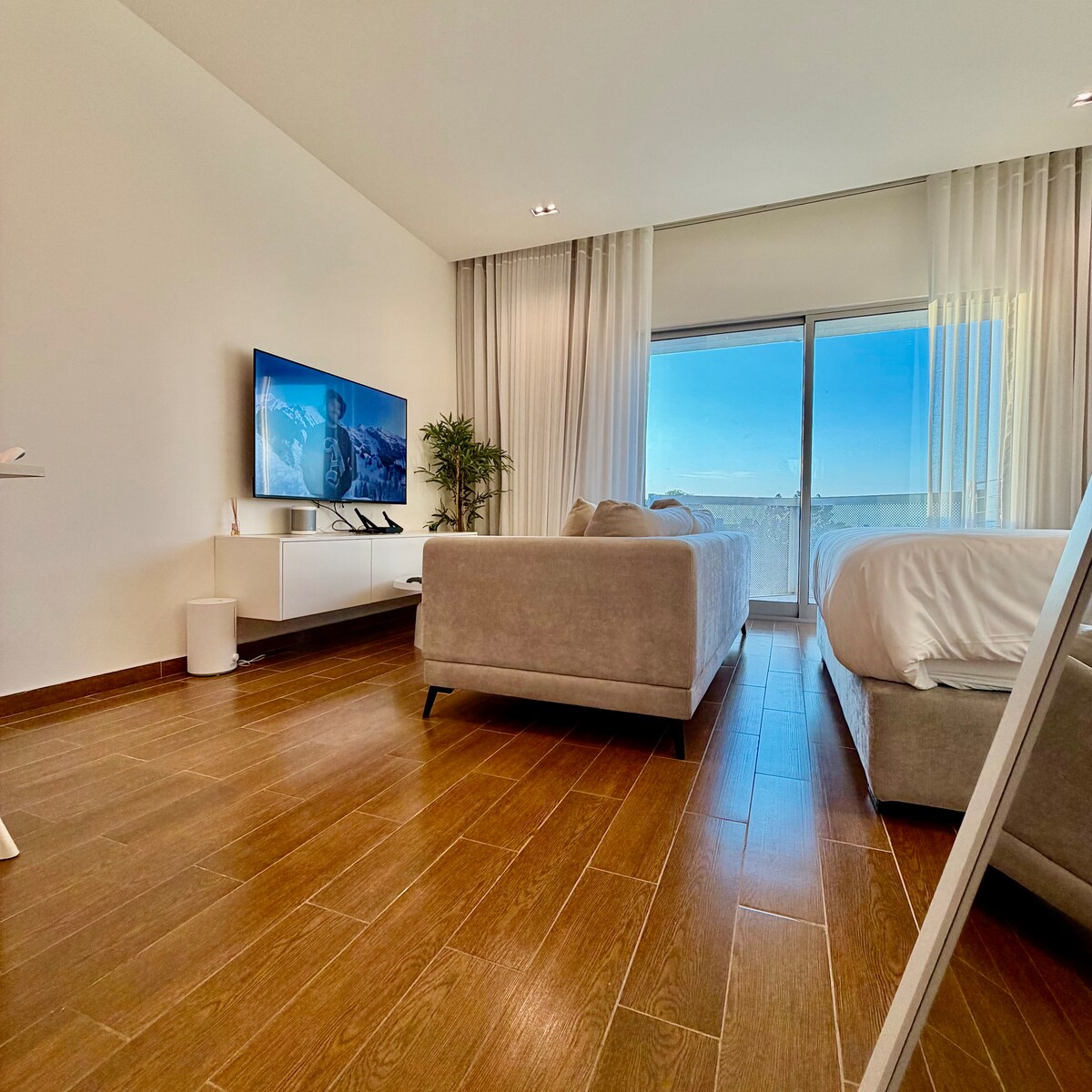 Fáilte chuig ár saoire shuaimhneach dóibh siúd atá ag lorg compoird agus ciúin gan áisiúlacht uirbeach a thabhairt suas. Cuireann an tApt eisiach seo spás teolaí ar fáil, maisithe le haird ar mhionsonraí, ag cur stíl agus feidhmiúlacht le chéile. Bain sult as atmaisféar socair, foirfe chun do scíth a ligean, ar lastas farraige, tar éis lá taiscéalaíochta nó oibre. Suite i gcomharsanacht shábháilte ghalánta, beidh tú nóiméad ó bhialanna, caiféanna agus nithe is díol spéise áitiúla, ach i bhfad go leor ón torann.